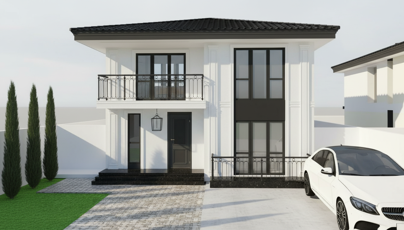 exterior shot remove horiontal linwa on the facade