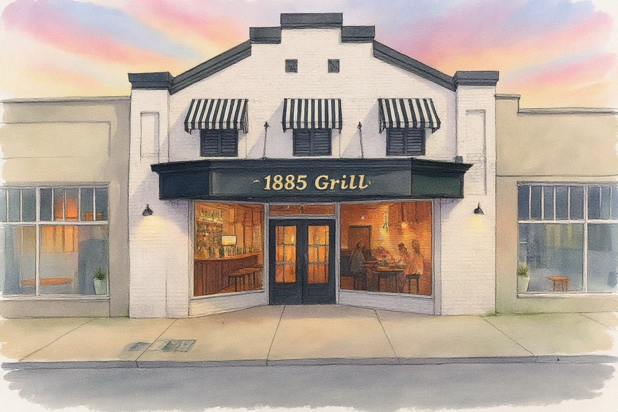 keep the same hand sketch watercolor style filter add gold kick plates to the front door make the signage look backlit