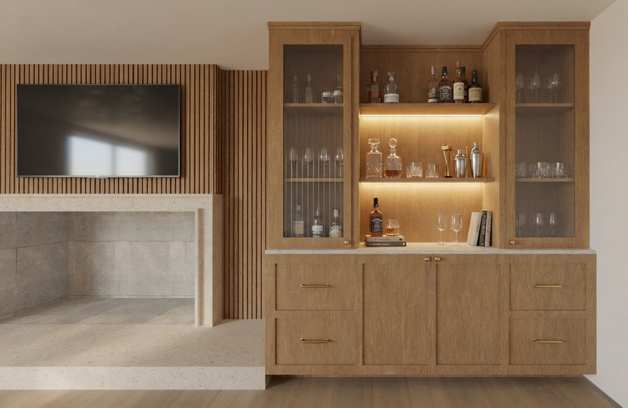 show floor plan show medium hardwood through out show medium size furniture concrete floor in garage show text and room sizes move garage man door inline with left side wall remove furniture in utility room and rec room