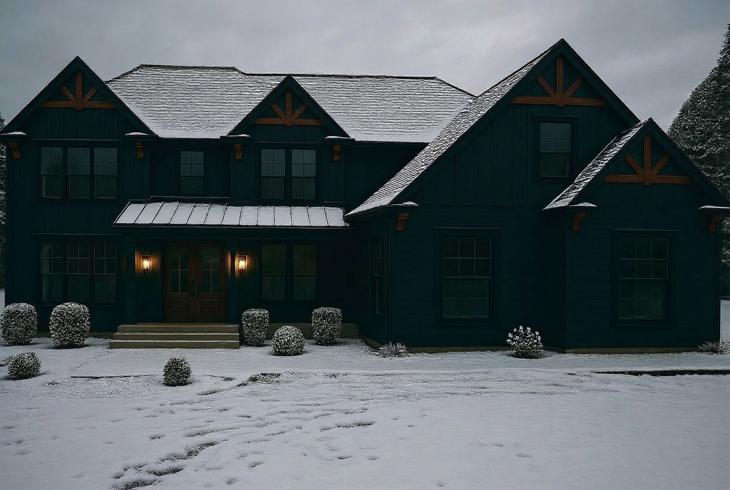 leave everything the same just make the tiny wooden decorations and front door darker stain bluer siding