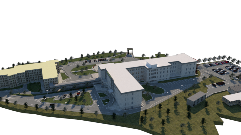 the entire empty area outside the building should be made into a green field with greenery