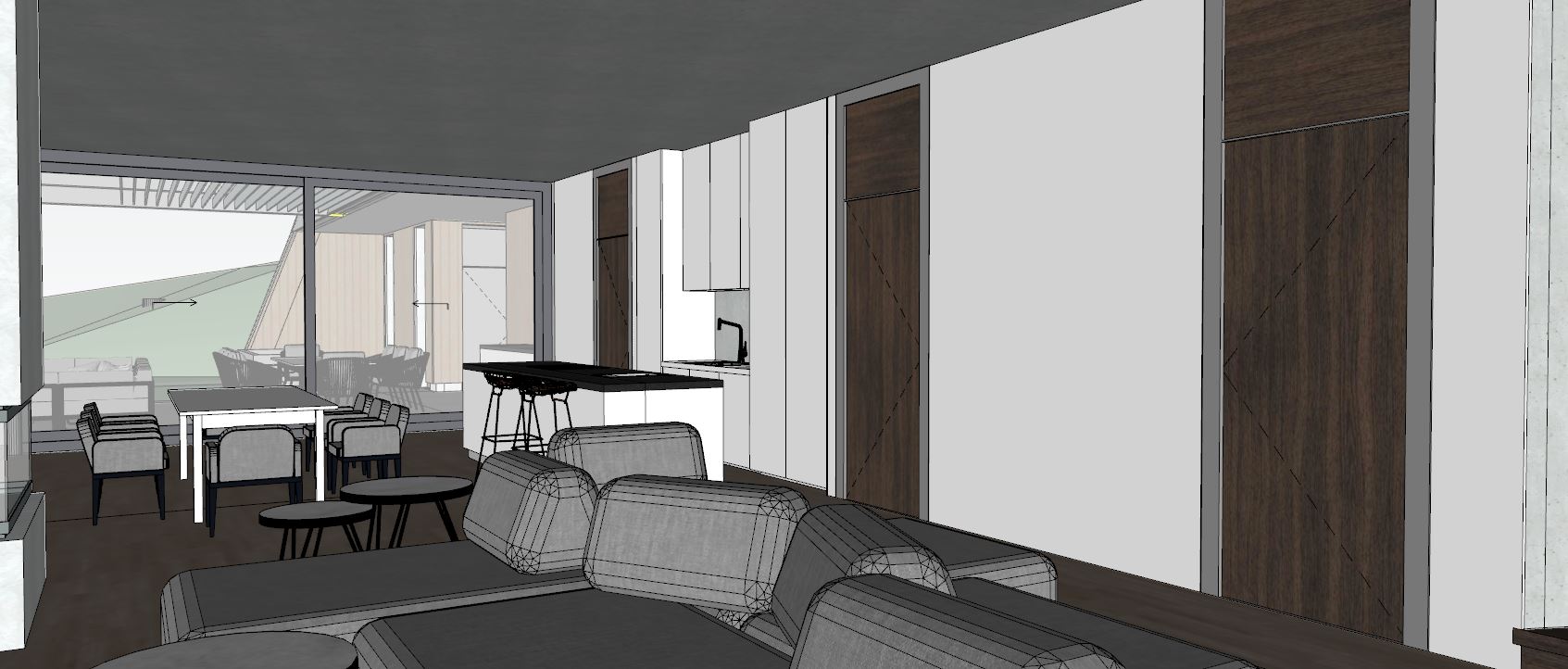 tadao ando interior shot light maple bronze appliances kitchen top green stone maple timber wall luxury concrete floor concrete ceiling walnut doors architecture