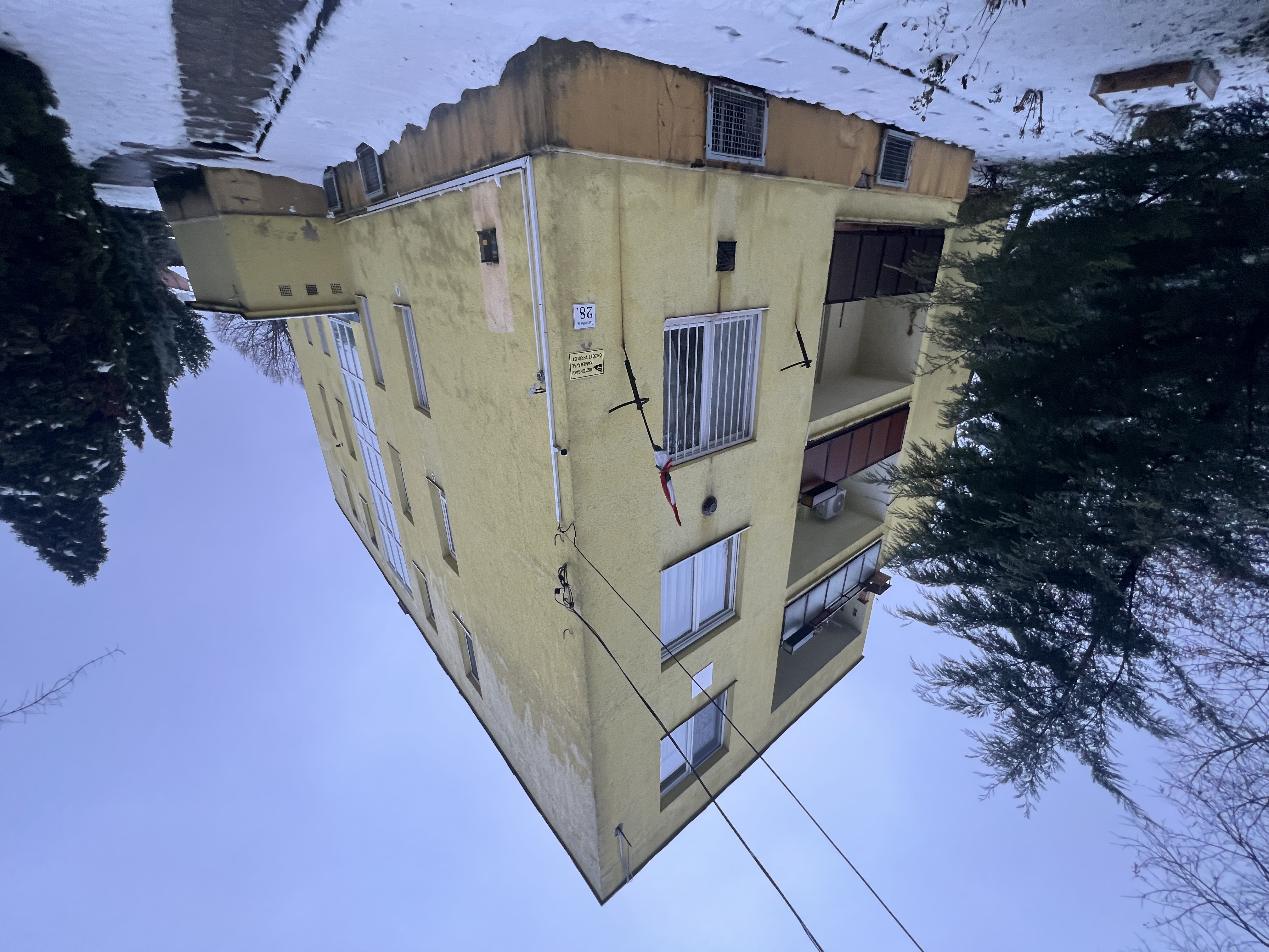 minimalism exterior shot use the provided photograph as the base reference transform the building facade to appear fully renovated facade colors sto color system apply sto 16003 as the primary facade color across all exterior wall surfaces create a continuous painted horizontal band running around the entire facade above the windows with a height of approximately 30 cm using sto 16017 restrictions do not modify the building geometry proportions or massing do not add remove relocate resize or alter any windows or openings preserve the original architectural layout exactly details remove all visible exterior cables and wiring from the facade replace all existing balcony railings with modern railings featuring vertical metal balusters environment add a green landscaped surrounding including trees and vegetation add a continuous pedestrian sidewalk around the building maintain the original camera angle perspective lighting and scale of the photograph ensure all changes appear architecturally realistic clean and professionally renovated rendered in high quality photorealistic detail take the bars off the windows the plinth should be dark in color close to anthracite architecture