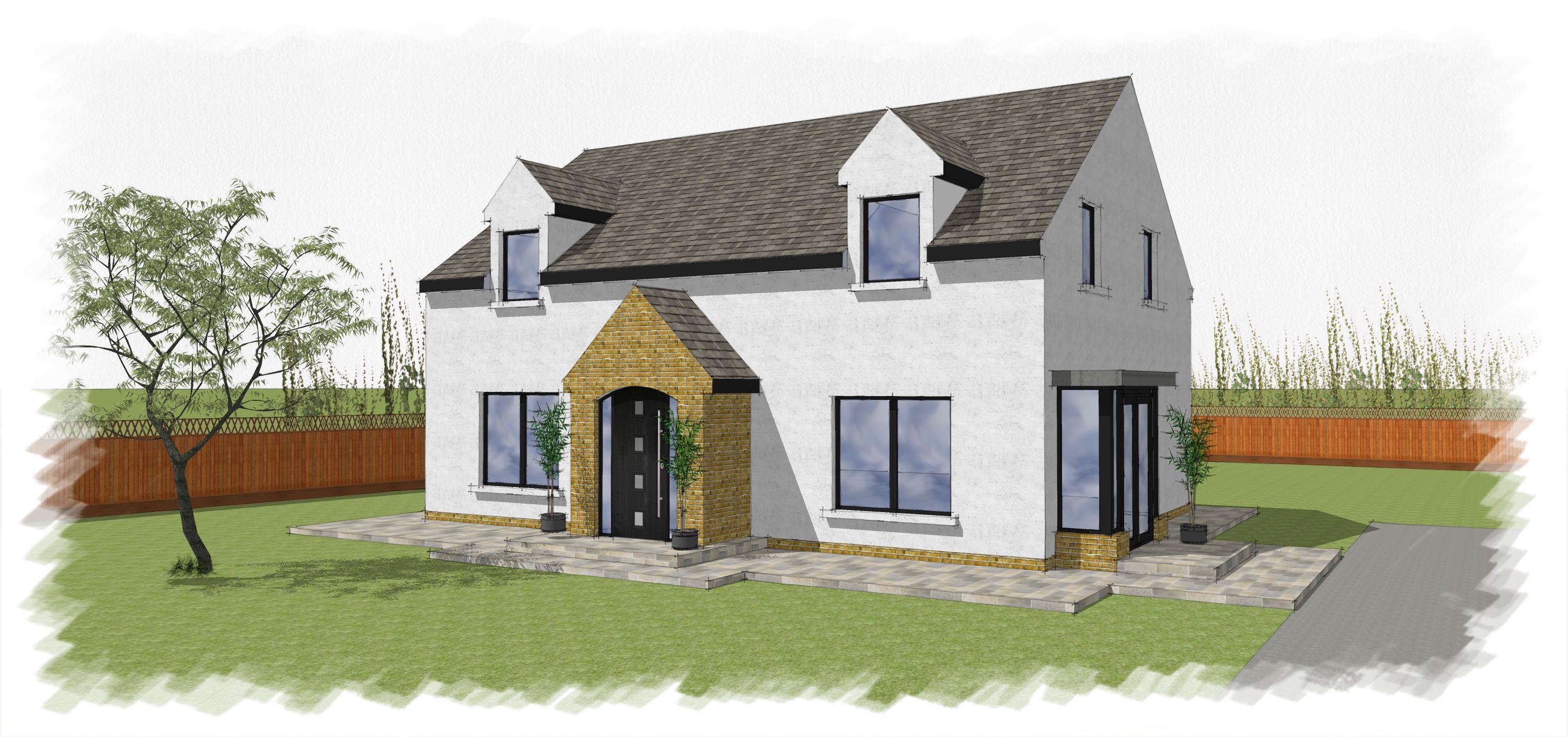 i would like to keep this image as it is please but add in some people a car and maybe some additional planting to the rear of the property