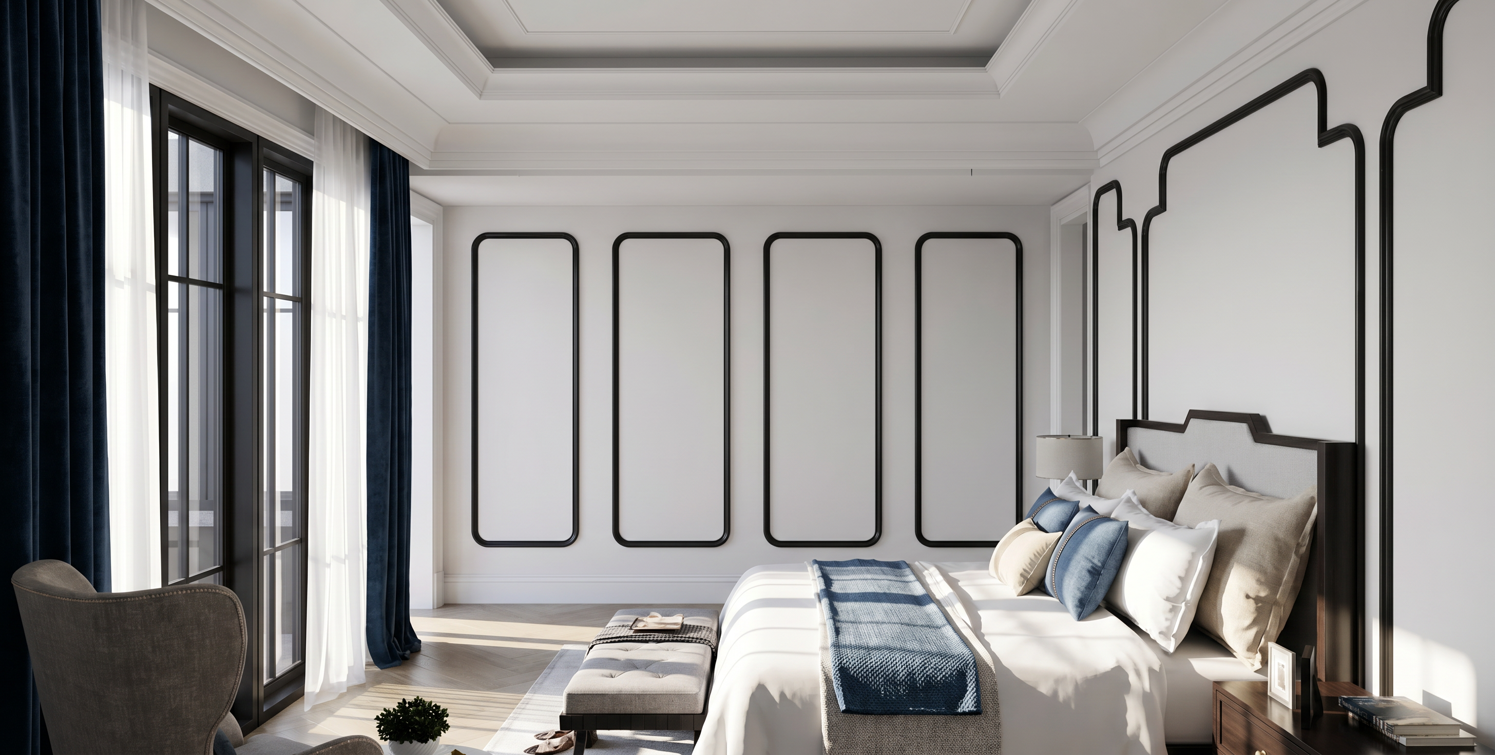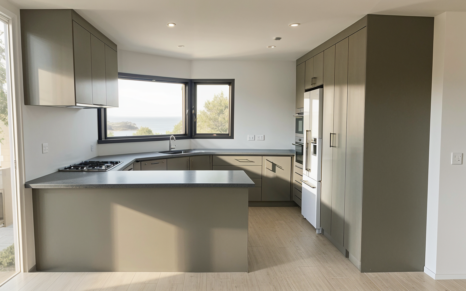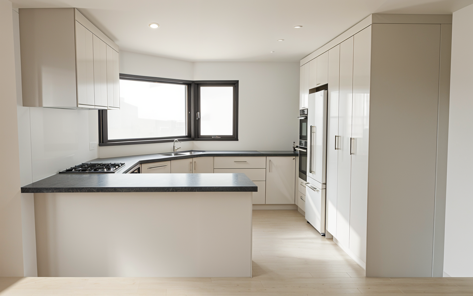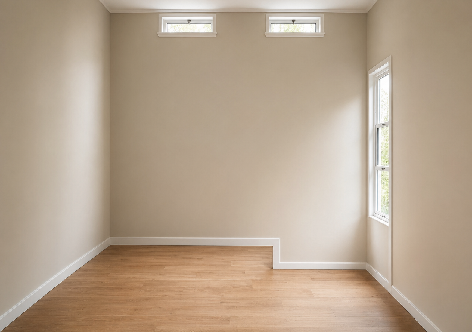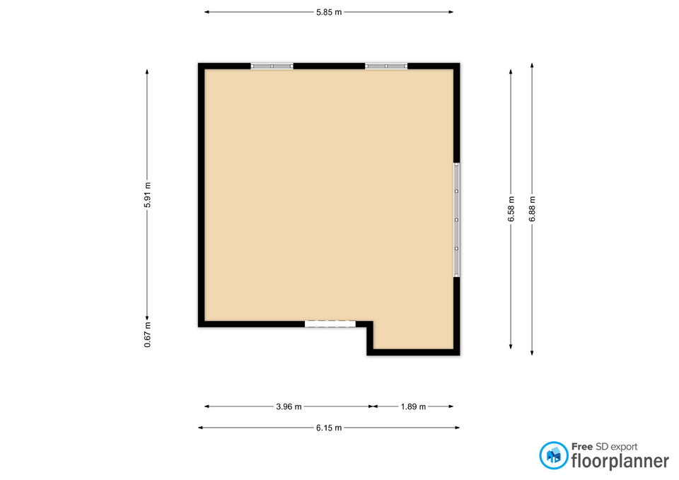 based on the attached floorplan render a realistic view of the empty room keep walls white and wooden vinyl floor keep the floorplan attached real measures height of the ceiling is 3m