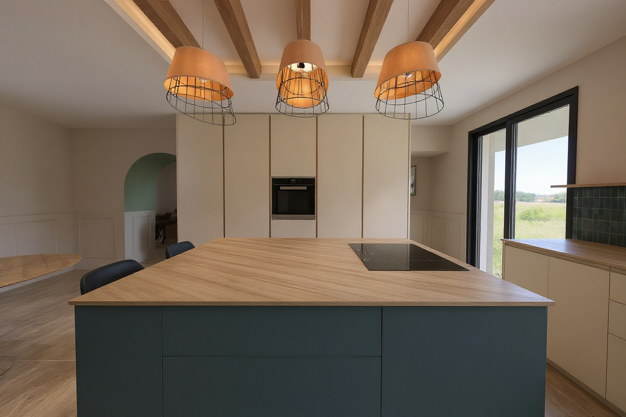 modern garden room design with wood cladding front exterior set in a bright garden with paving out the front and flowers and trees sunny day