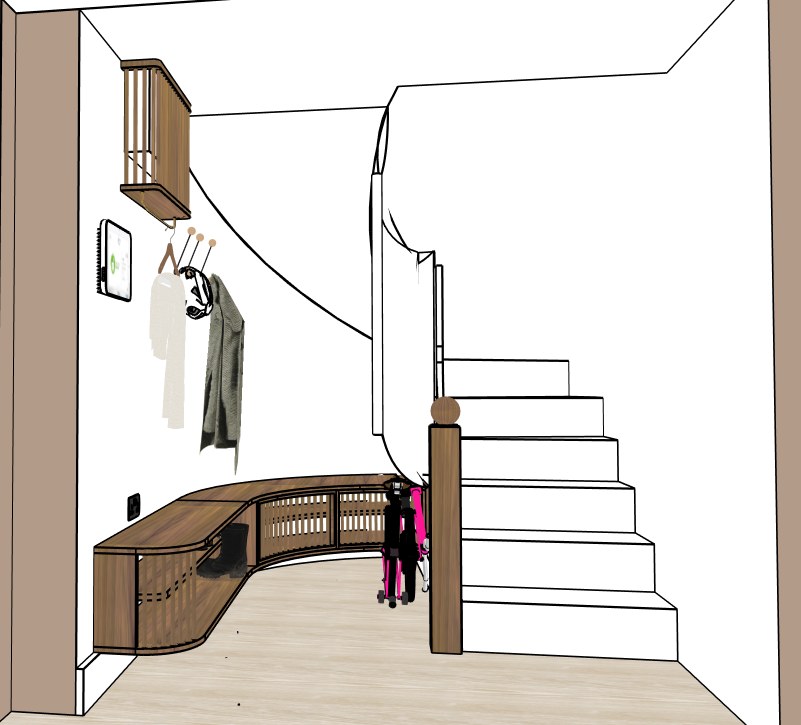 maintain all geometry design details stay true to the selections and their materiality in texture and color but bring in more lighting brightness variations the stairs going up are all white