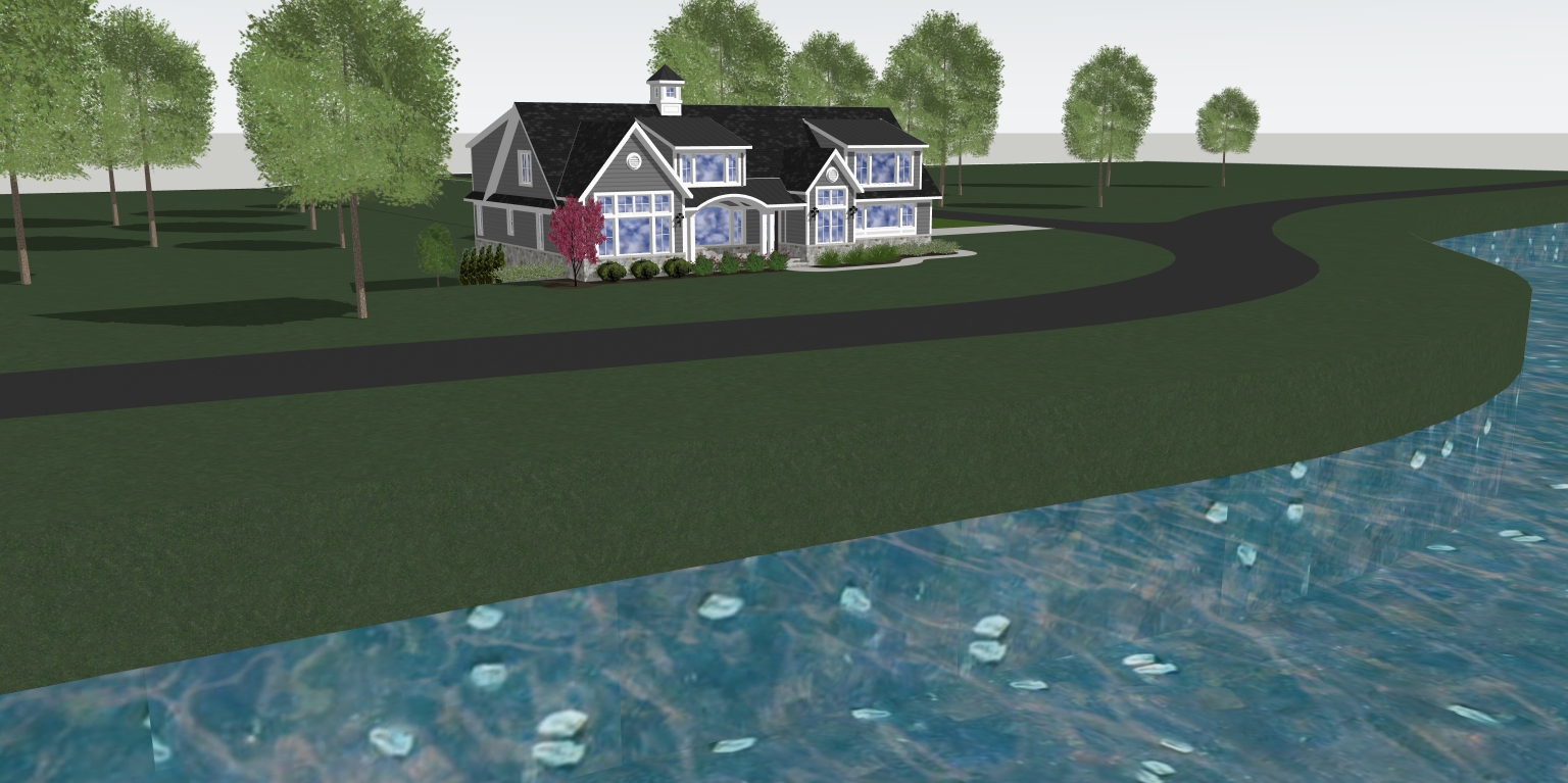 partly cloudy day house is on a cliff overlooking lake erie gray siding white windows white trim