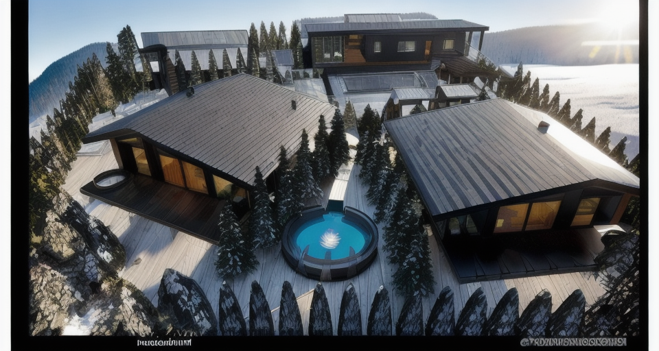 contemporary exterior shot houses in a forest in mountain sunny morning black metal roof black windows black doors wood accent and wooden finishes architecture