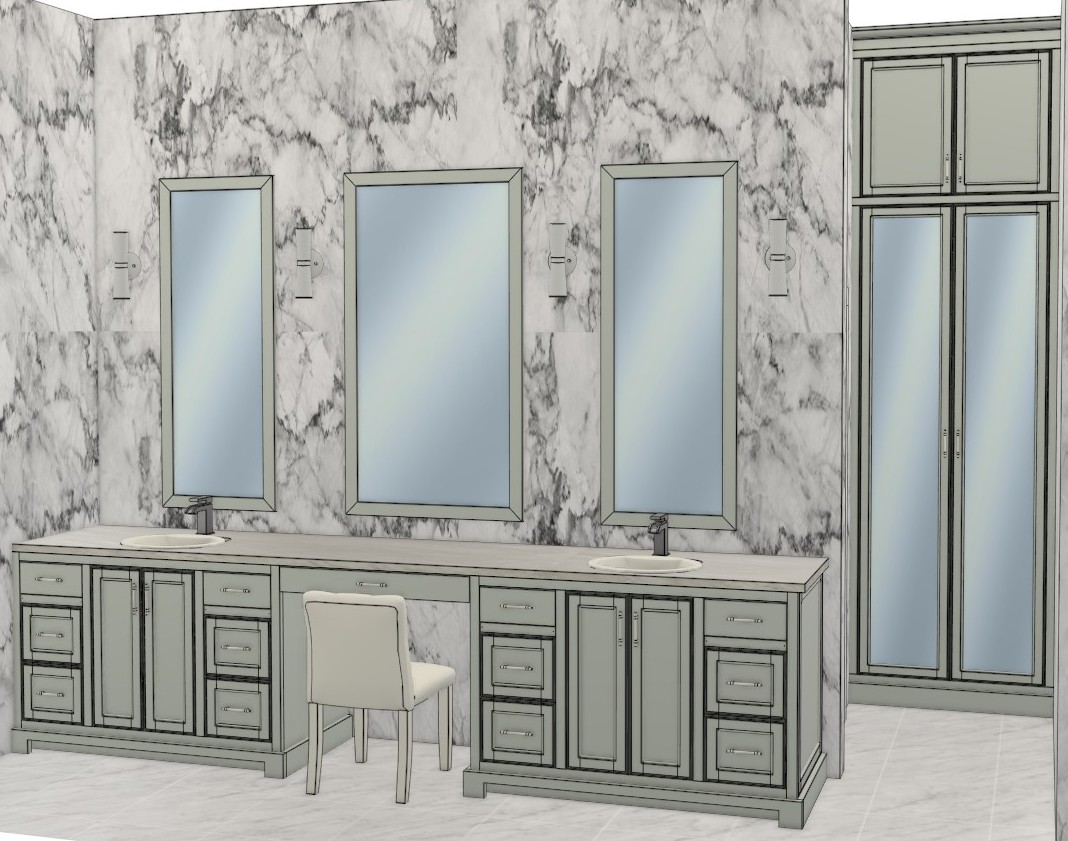 the cabinets are farrow and ball pale powder blue the only mirror doors are the tall doors