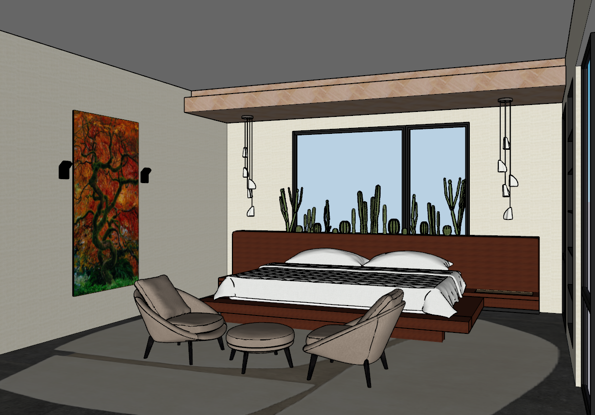 keep all colors and shapes the same the bed is upholstered terracota fabric