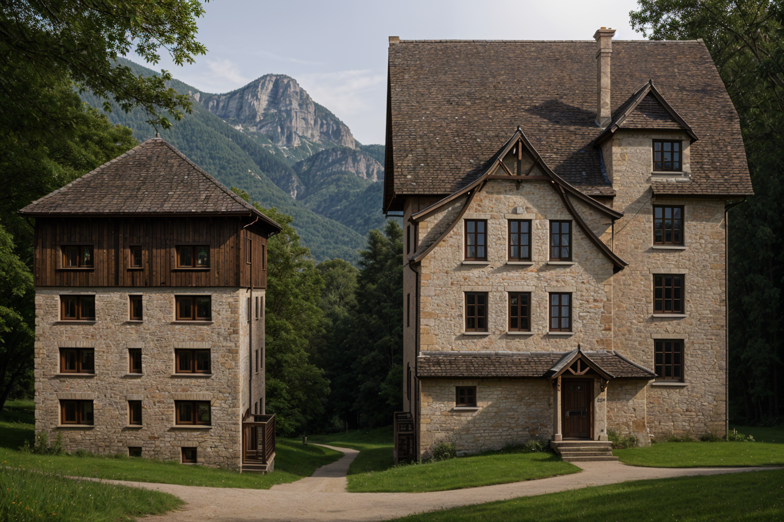 render a luxurious kitchen interior with a warm cozy and elegant atmosphere use soft indirect lighting to create a sophisticated and intimate mood that highlights the rich materials and fine textures the floor is composed of light colored stone tiles each 120 cm x 120 cm with a smooth matte finish that subtly reflects light the countertop is made of classic emperador dark marble showcasing deep brown and orange hues with rounded flowing veining patterns characteristic of genuine emperador dark the surface should appear polished deep and naturally vibrant adding a refined sense of luxury the wood elements including base cabinets shelves and hanging elements are crafted from dark brown or smoked oak with a calm uniform grain creating a balanced and sophisticated appearance in the back composition the standing base cabinets should be finished in a warm uniform brown tone a soft bowl like warm shade to harmonize with the space and add visual depth only the hanging cabinets above the gap should be made of smoked oak matching the island to create a strong visual connection on the island position the sink on the left side and the cooking station on the right featuring a sleek integrated tap in brushed bronze or gunmetal for a refined look decorate the scene subtly with elegant accessories wine glasses carafes and minimal d cor pieces to add realism and sophistication apply realistic materials soft reflections and warm ambient light to emphasize craftsmanship texture and atmosphere ignore the two lines in the front the final composition should focus on the back wall showcasing a perfect balance between warm brown cabinetry smoked oak accents and the emperador dark marble achieving a dark elegant and inviting aesthetic filled with warmth depth and timeless refinement