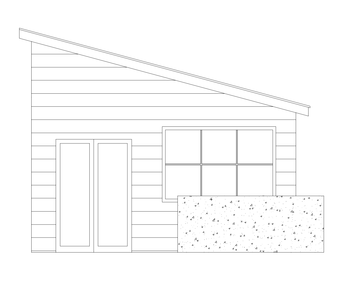 outdoor beach restaurant with white siding and dark metal roof there is a curved stucco wall in front operable garage doors will be open for bar seating to bring the outside in