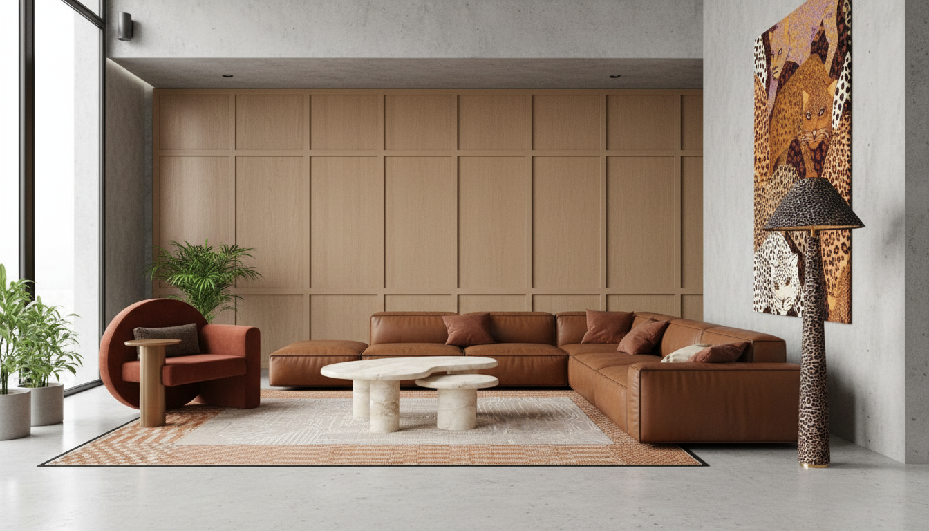 perspective shot create a detailed rendering of a cozy rustic kitchen interior use warm earth tones and soft lighting for an inviting atmosphere the wooden beams on the ceiling should be a rich dark brown paint the walls in a soft beige the large central dining table should be a natural oak color surrounded by chairs with a deep olive green fabric the kitchen island should feature a marble countertop in gray with subtle white veining cabinetry should be a soft cream color with brushed metal handles add subtle warm light fixtures from the ceiling and ensure the countertops have stylish kitchen appliances in brushed stainless steel infuse a sense of warmth and homeliness with potted plants ceramic bowls in muted tones and rustic decorations on shelves the overall atmosphere should be welcoming and warm blending elegance with rustic charm