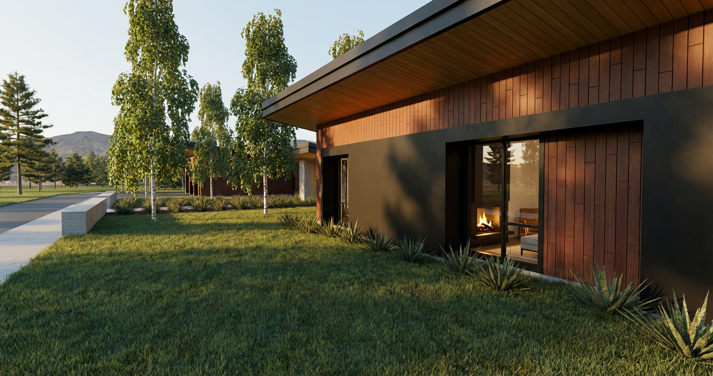 modern kitchen and living room