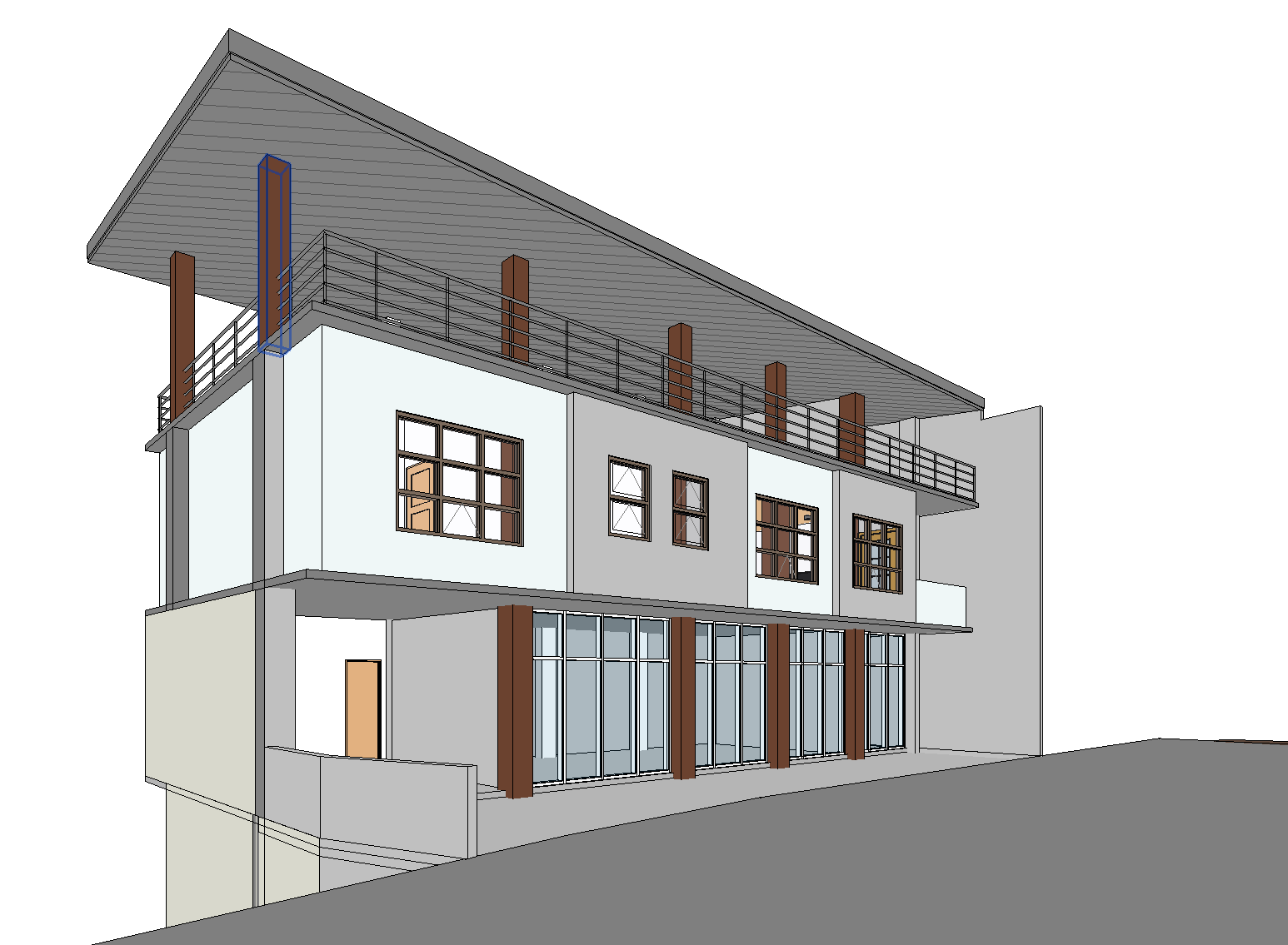 nordic exterior shot use white as main color with brown grey and wood as accents front is a concrete road the background is a mountain in the philippines architecture