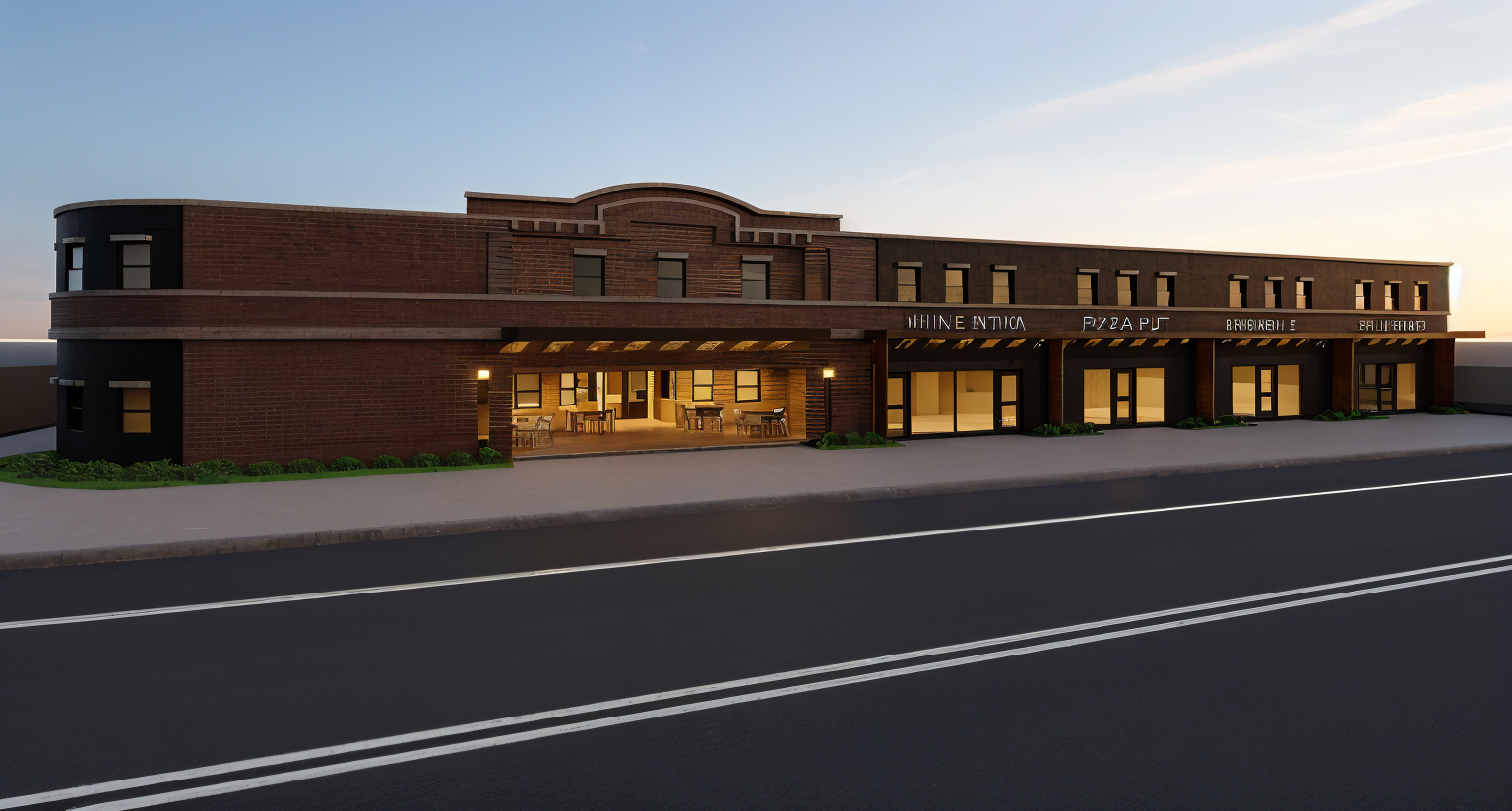 storefront with lights on realistic low urban enviornment