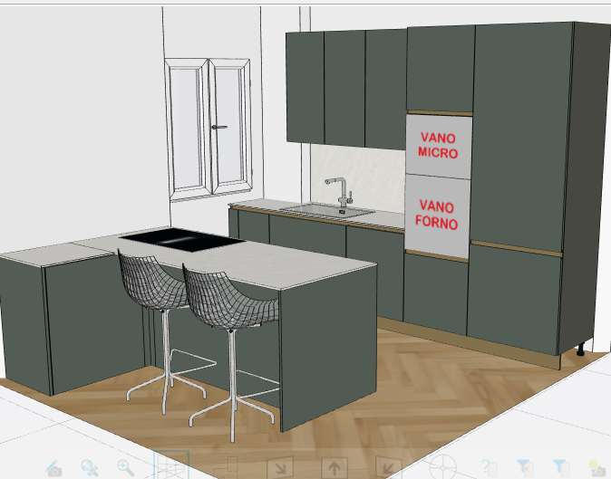 ultra photorealistic interior kitchen render strictly based on the provided reference image this is a faithful premium minimal transformation not a redesign reproduce exactly the same kitchen layout geometry proportions and volumes shown in the reference no design changes of any kind all cabinet fronts side panels island and tall units must be matte finishes color must match exactly the reference image solid matte green tone surfaces must be fully opaque non reflective non glossy no lacquer no satin no soft touch shine no plastic look high surface roughness reflectivity near zero plinths toe kicks and handle channels gole must be bronzed metal finish bronze tone must be warm elegant and realistic with a satin metal appearance no mirror effect no gold look no excessive shine subtle metallic reflection only consistent with real brushed or anodized bronze bronzed elements must remain discreet and premium not dominant countertop must remain neutral and realistic coherent with the reference design do not introduce glossy finishes unless explicitly required add integrated under cabinet lighting below the upper units warm soft functional led light minimal intensity realistic and continuous lighting must gently highlight materials without creating reflections on matte surfaces add a few premium minimal objects on the countertop for example a modern coffee machine in matte black or brushed steel and one or two discreet everyday objects objects must be few well spaced refined and never cluttered they must not hide materials or dominate the scene lighting must be physically accurate and balanced natural daylight entering from the window combined with integrated artificial lighting no cinematic lighting no dramatic contrast no showroom effects maintain realistic shadows correct scale clean edges and natural material behavior architectural photography style eye level camera natural perspective 35 45mm focal length straight vertical lines global illumination clean and realistic result absolute rules no color changes no material reinterpretation no glossy cabinet surfaces no shiny gold metals no decorative lighting if cabinet fronts appear shiny or reflective the render is incorrect