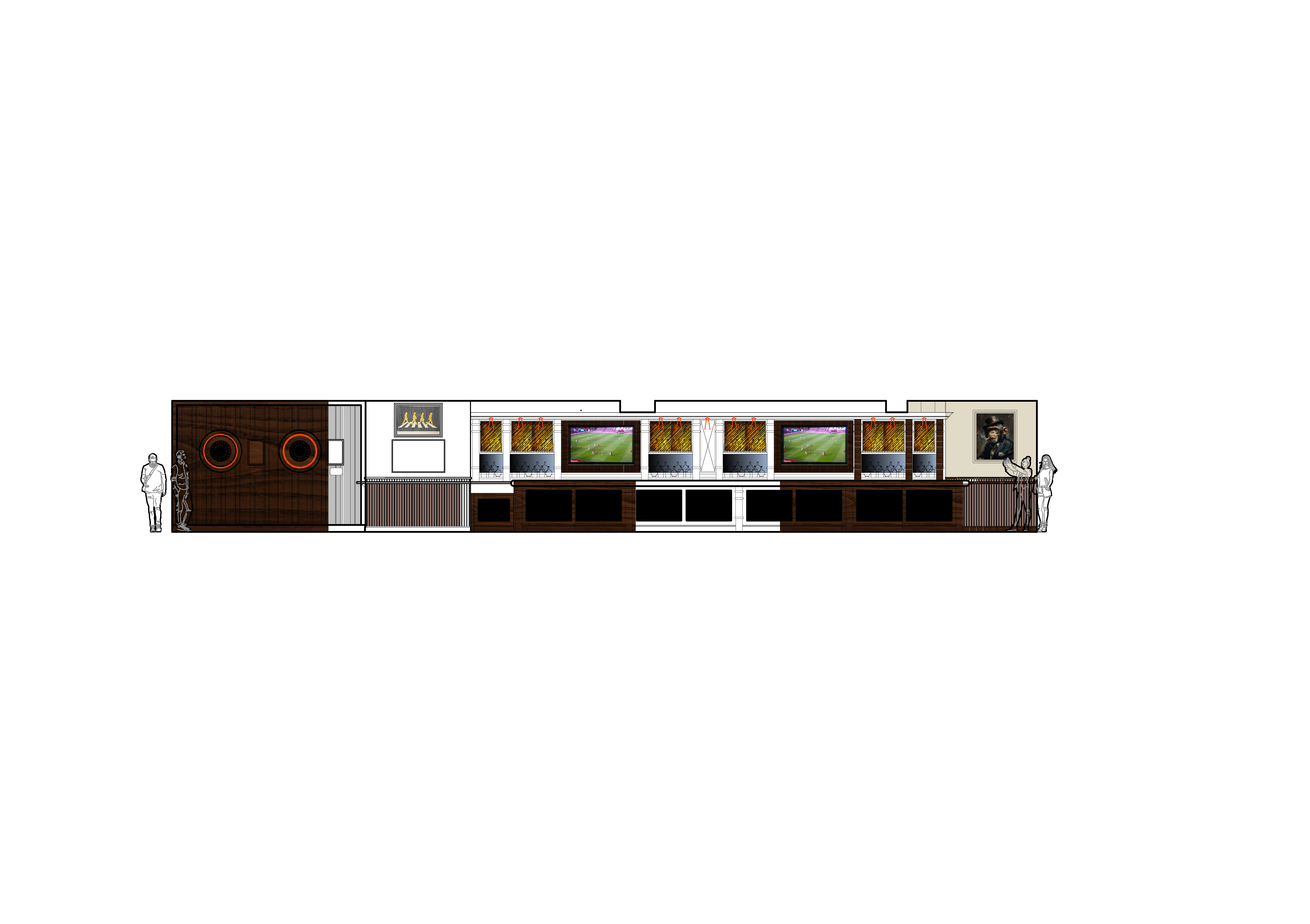 elevational visual to show floor finishes light fittings artwork