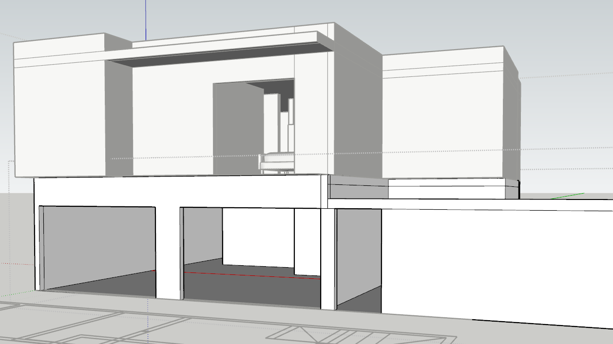 modern low cost residential exterior facade must respect existing geometry and volumes no structural or volumetric changes two garage entrances with metal gates front perimeter wall steel pedestrian access door clean modern design simple geometry low cost materials materials smooth plaster white and light gray paint exposed concrete painted steel synthetic wood accents metal gates with horizontal or vertical slats matte black or graphite color minimalist steel pedestrian door integrated into perimeter wall warm led lighting accents modern urban residential look realistic exterior render soft shadows daylight architectural visualization style