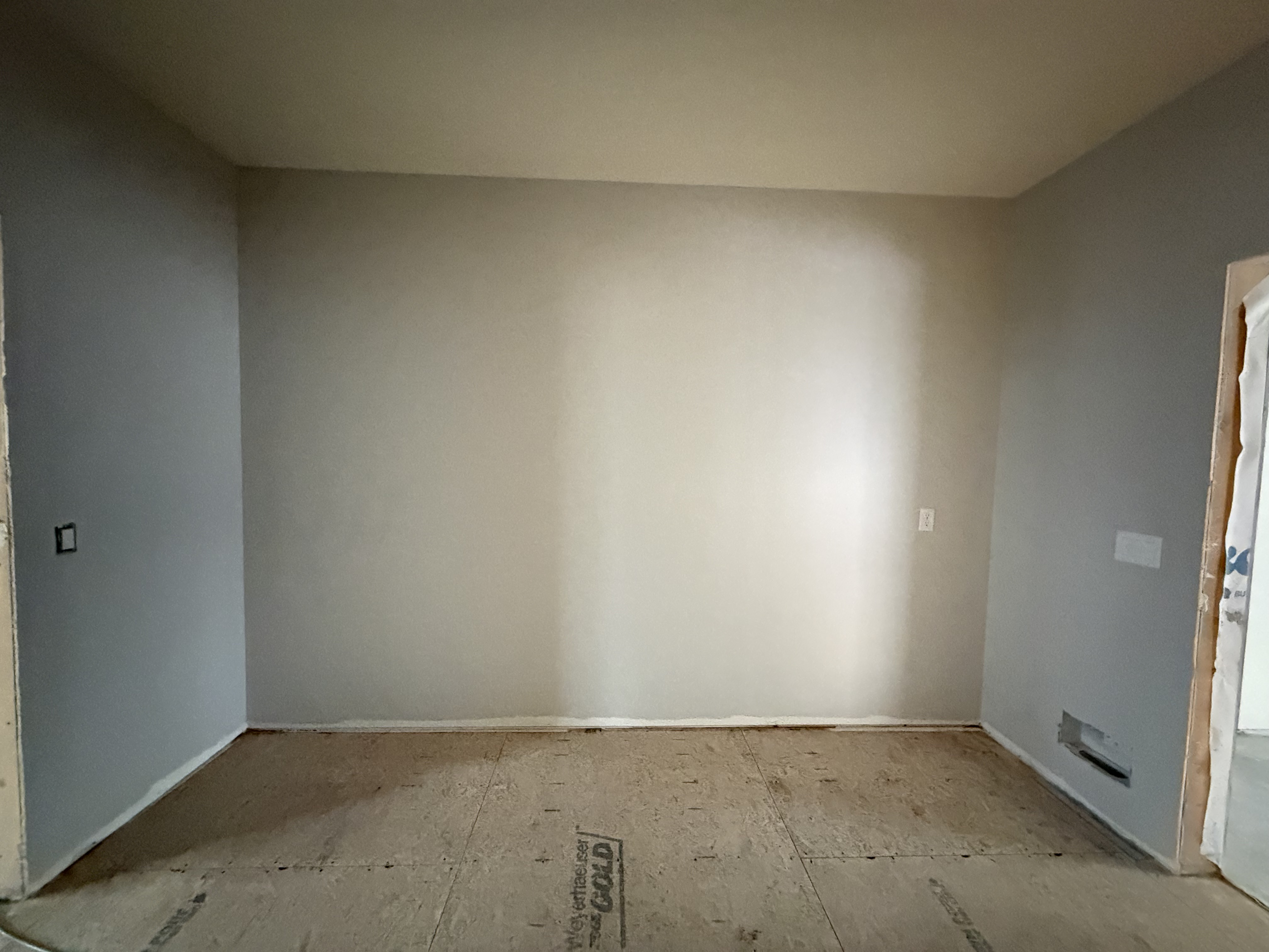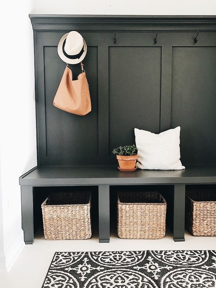 exterior shot this mudroom and drop zone area will have a wainscot bench with hooks painted with sherwin williams black fox and a white oak wood bench seat to the right by the light switch and door there will be a 36 drop zone countertop area