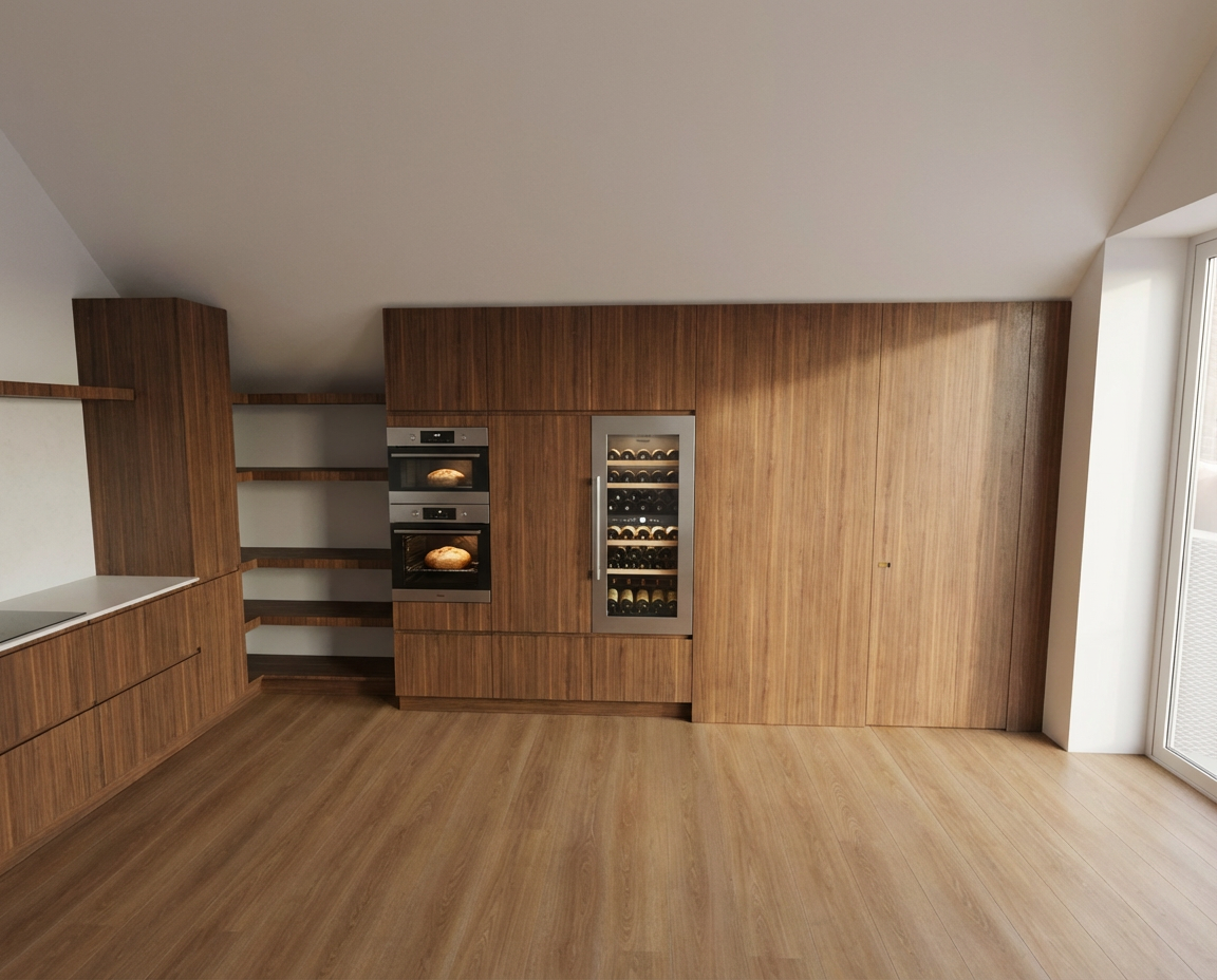 convert this floor plan into a minimalist isometric 3d view of a full house show the space from an elevated angle with furniture walls and details visible create a beautifully rendered architectural floor plan with a modern and minimalist style use a soft white background for a clean look highlight the walls in a light grey while keeping the lines and labels in a crisp black for contrast add subtle wood textures in light oak for the flooring areas labeled with dimensions for the balcony area apply a soft green to suggest greenery and freshness introduce a gentle blue for any bathroom or kitchen areas to convey a sense of calm and cleanliness the overall atmosphere should be bright airy and contemporary seamlessly blending elegance with functionality use the same furniture as shows on the plan do not change the orientation of the floorplan