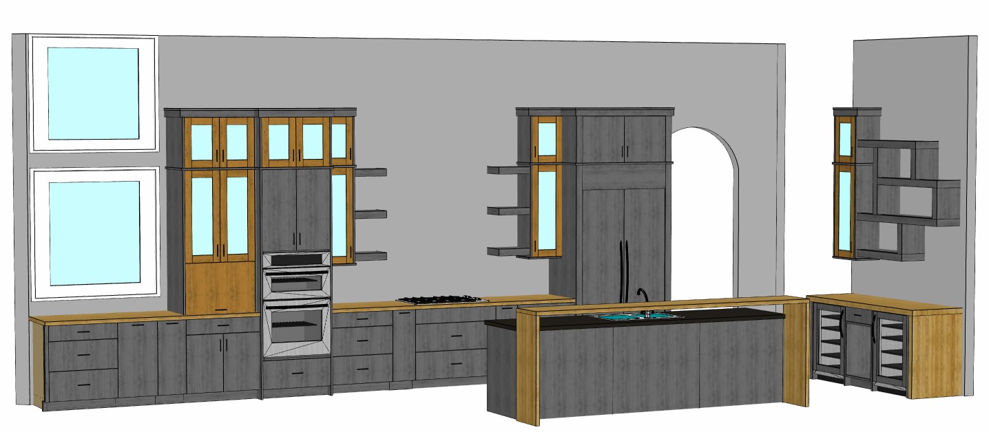 do not change the cabinets in any way preserve the exact cabinet colors materials finishes dimensions door and drawer styles hardware spacing alignment and all geometry exactly as shown do not alter the countertop shape backsplash appliances flooring lighting fixtures or wall structure only remove the construction materials clutter and mess from the scene clean the room and make it look finished and staged add a few simple tasteful home accessories appropriate for the style of the space but do not add or remove any furniture windows or architectural elements maintain the original lighting direction and realism enhance clarity and polish the photo while keeping the cabinetry and room design completely unchanged do not alter the lighting to keep the cabinet colors as they are in the image keep the white background just make it look realistic keep the graining on the island to match the rest of the cabinets