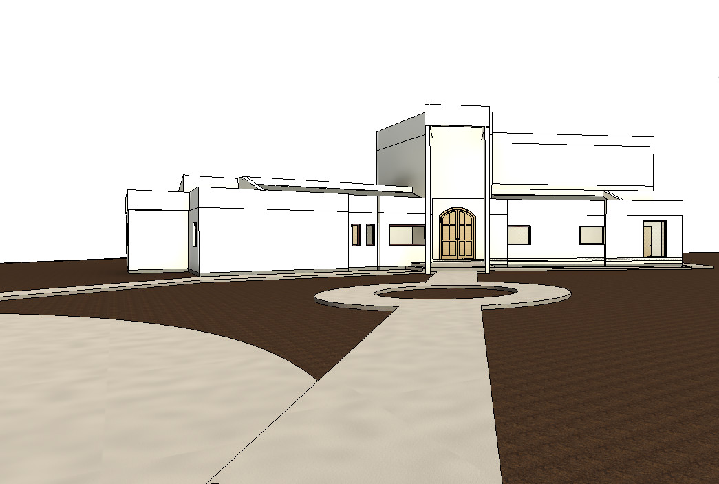 nordic exterior shot render a modern minimalist house with a clean geometric design the walls are crisp white and the roof incorporates shades of light gray the entrance features a wooden archway in rich oak brown complementing the dark chocolate colored pathways surround the scene with an ambiance of tranquil serenity bathed in soft golden afternoon sunlight that casts gentle shadows enhancing the architectural details the overall atmosphere is peaceful and inviting with a clear blue sky as the backdrop architecture