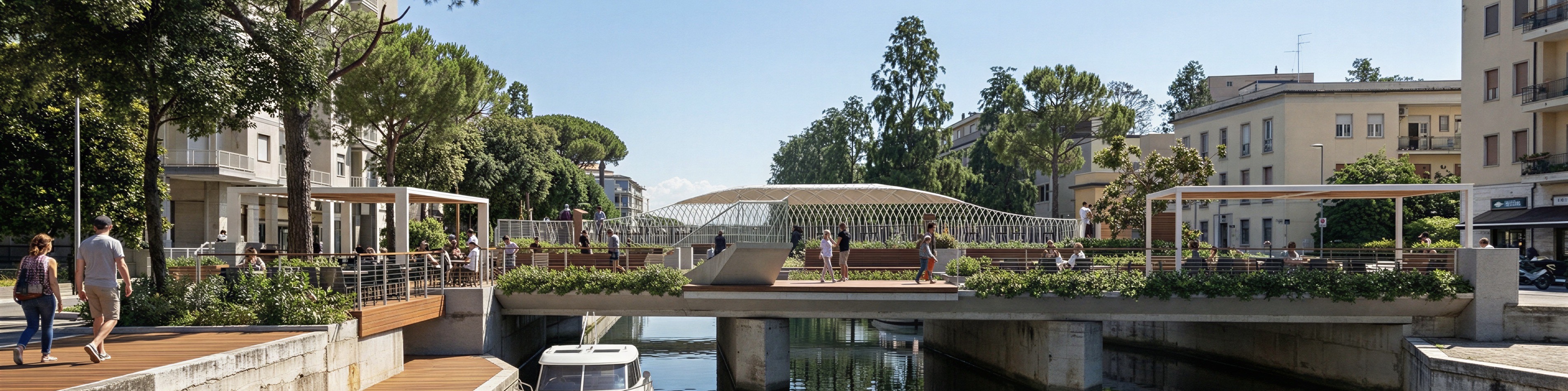 sunset view with evocative lights on the bridge turned on