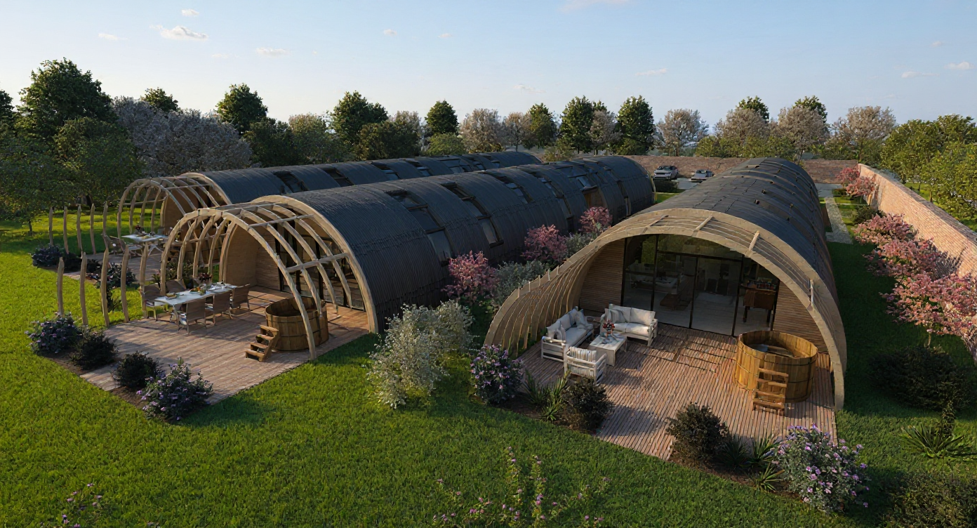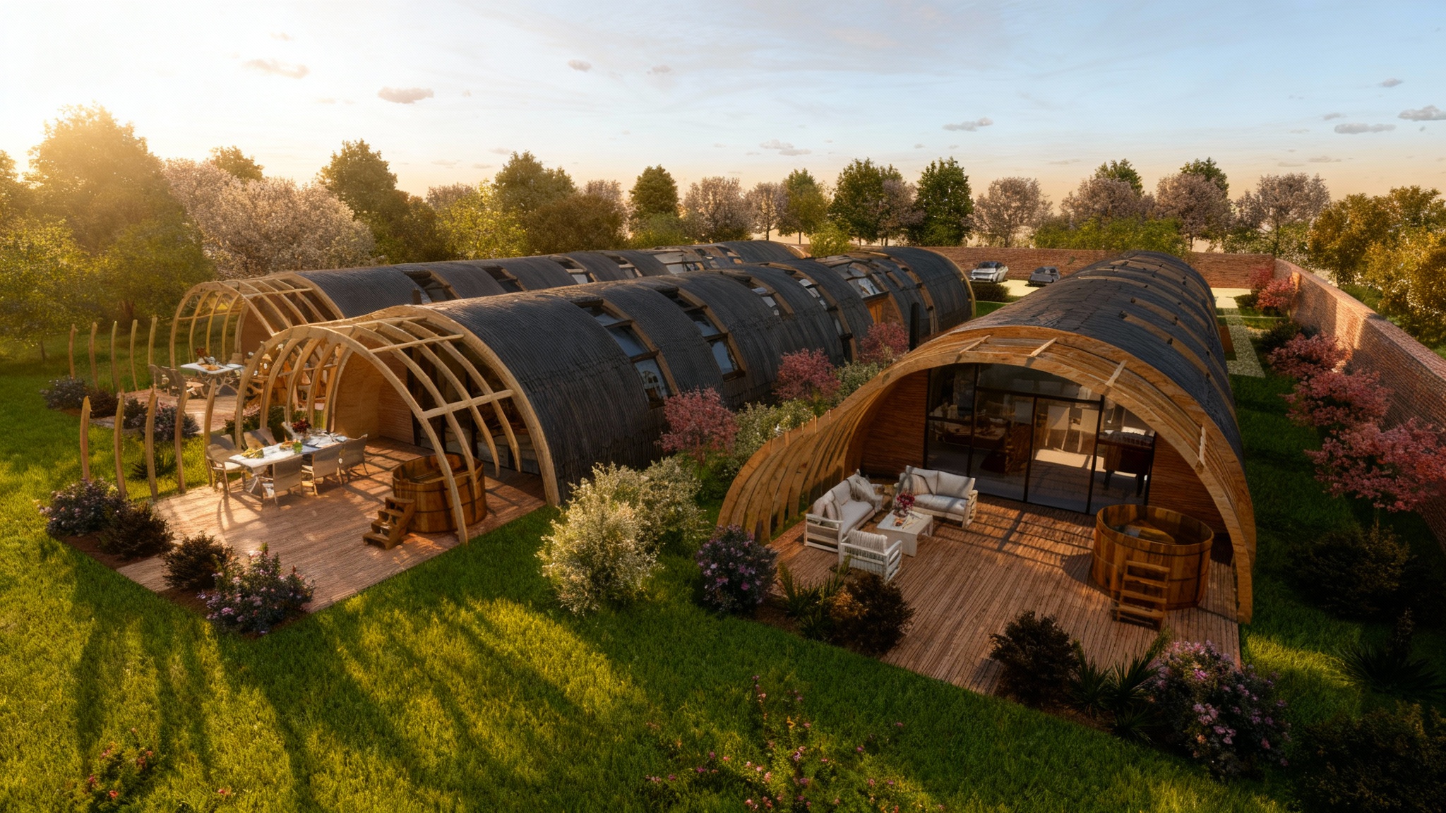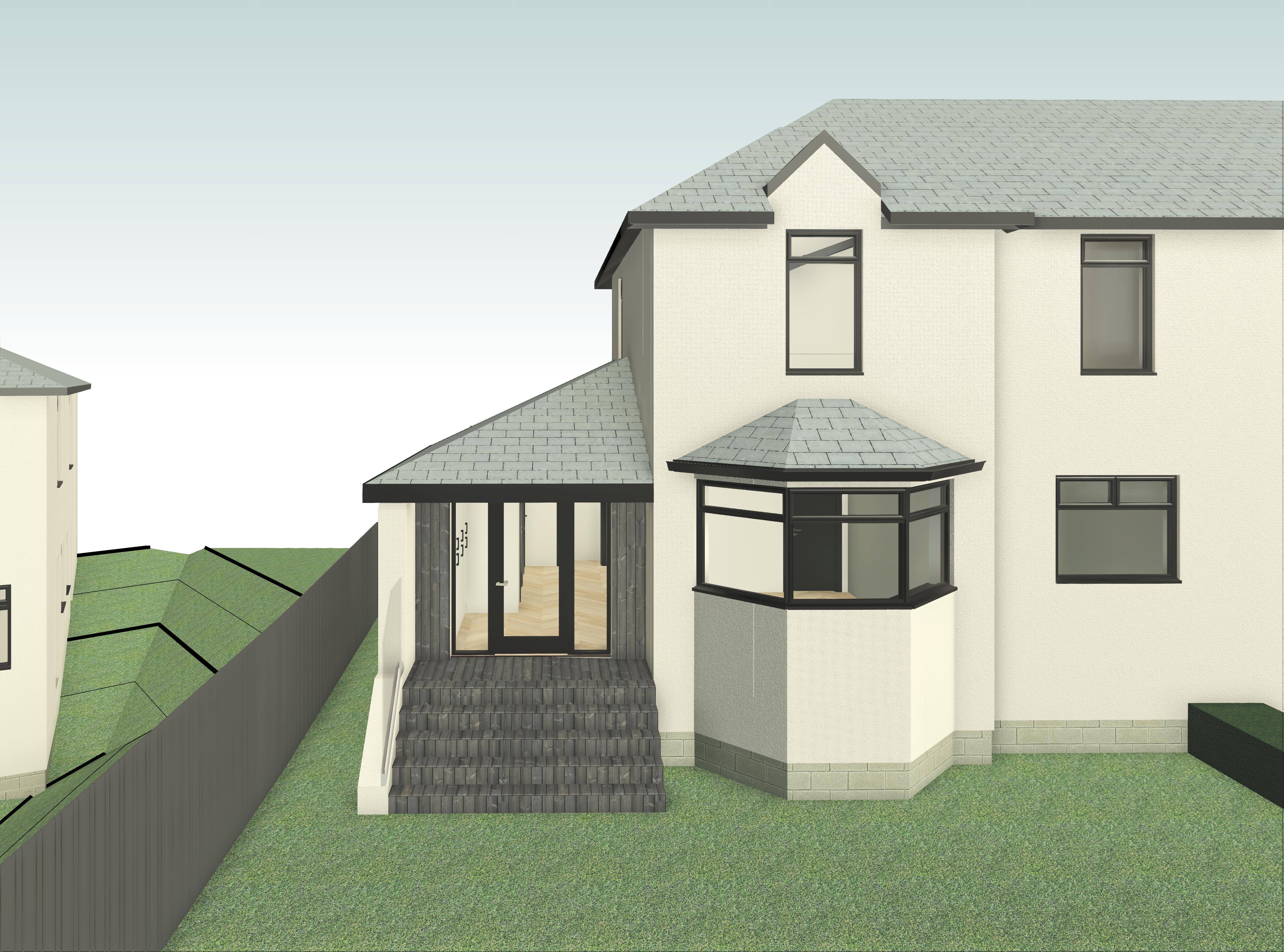 make grass and hedges realsistic make cream walls a render finsish add sky and trees in background