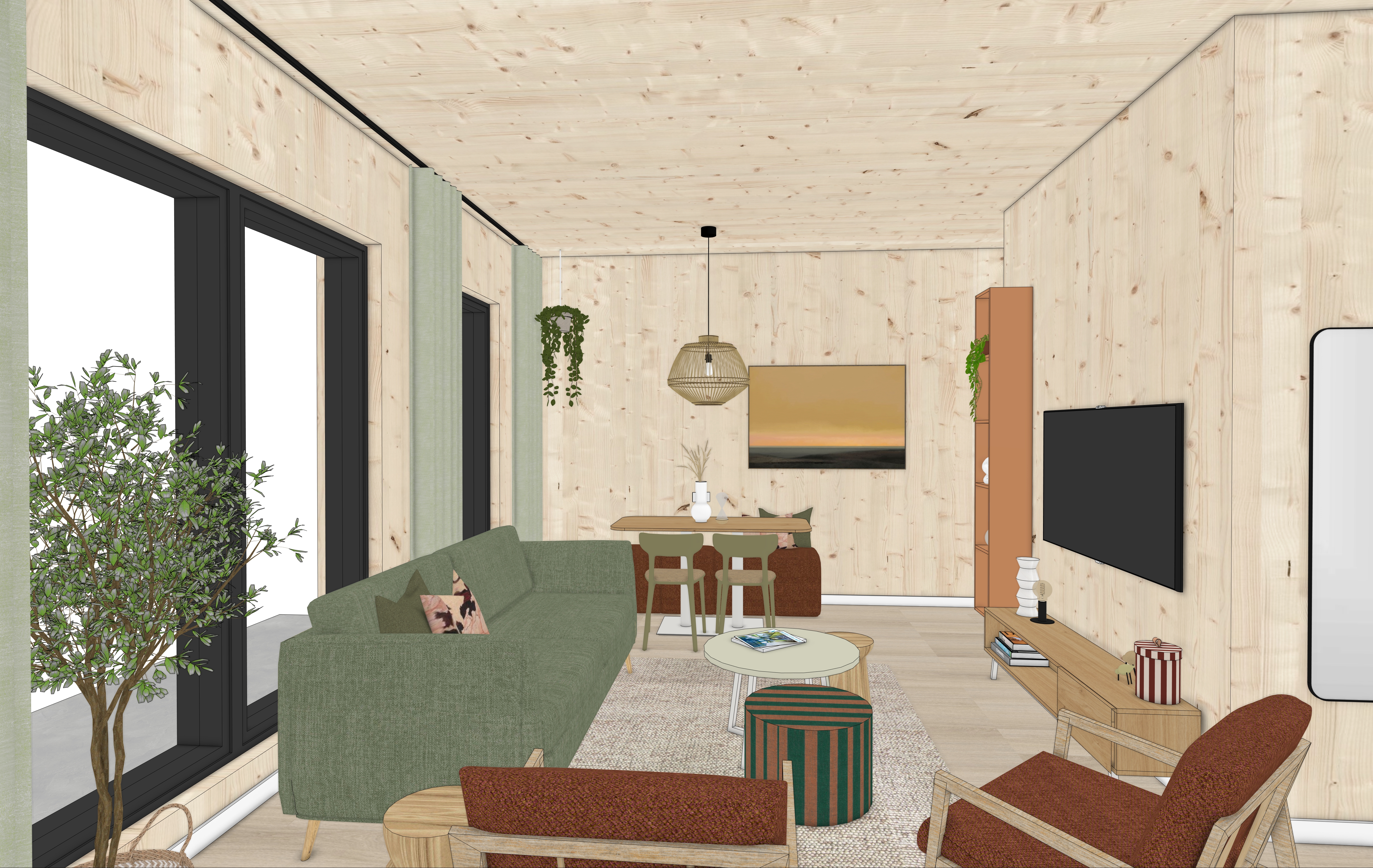 background dunes and sea natural lighting do not chanche the color of the wooden walls en ceiling