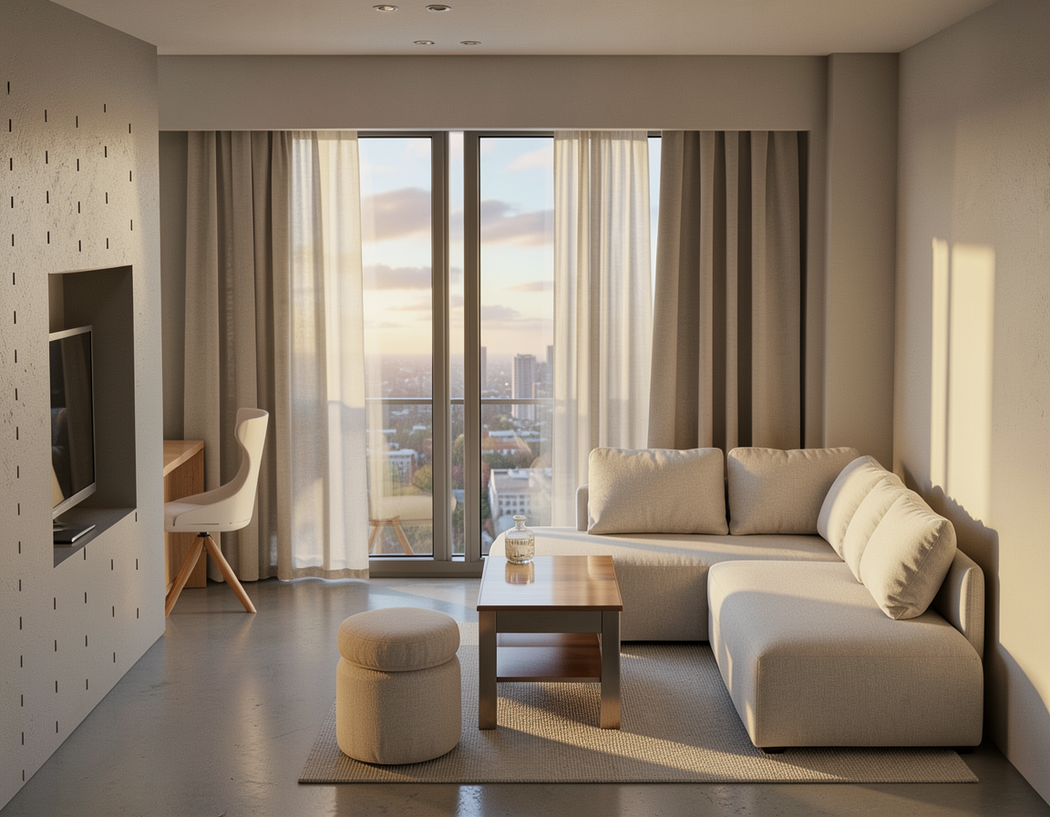 mejora esta imagen en cuanto a textura y calidad de l aimagen debe tener aspecto de imagen fotorealista profesional iluminacion natural y a ade decoracion estilo japandi no modifiques el mobiliario