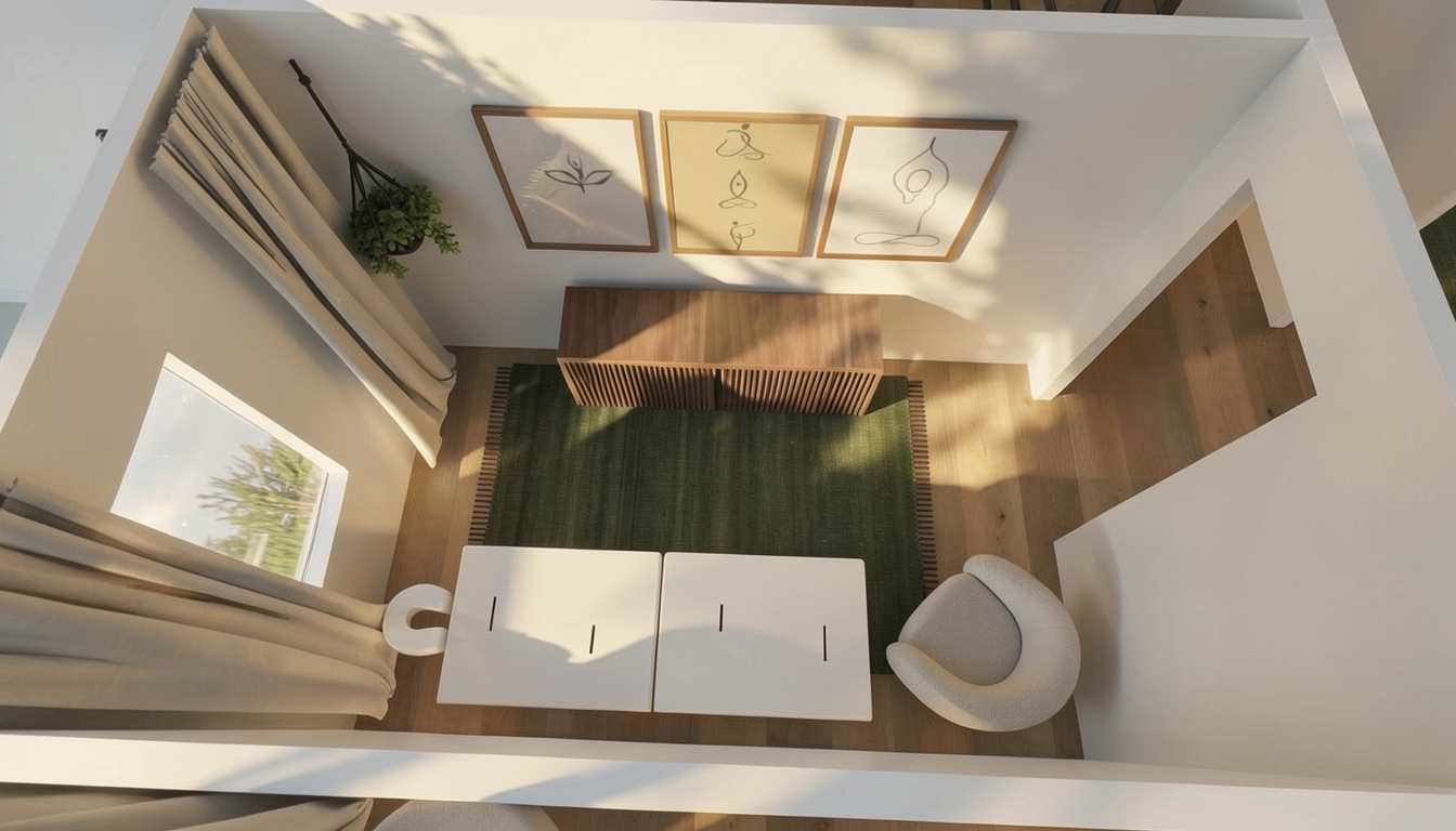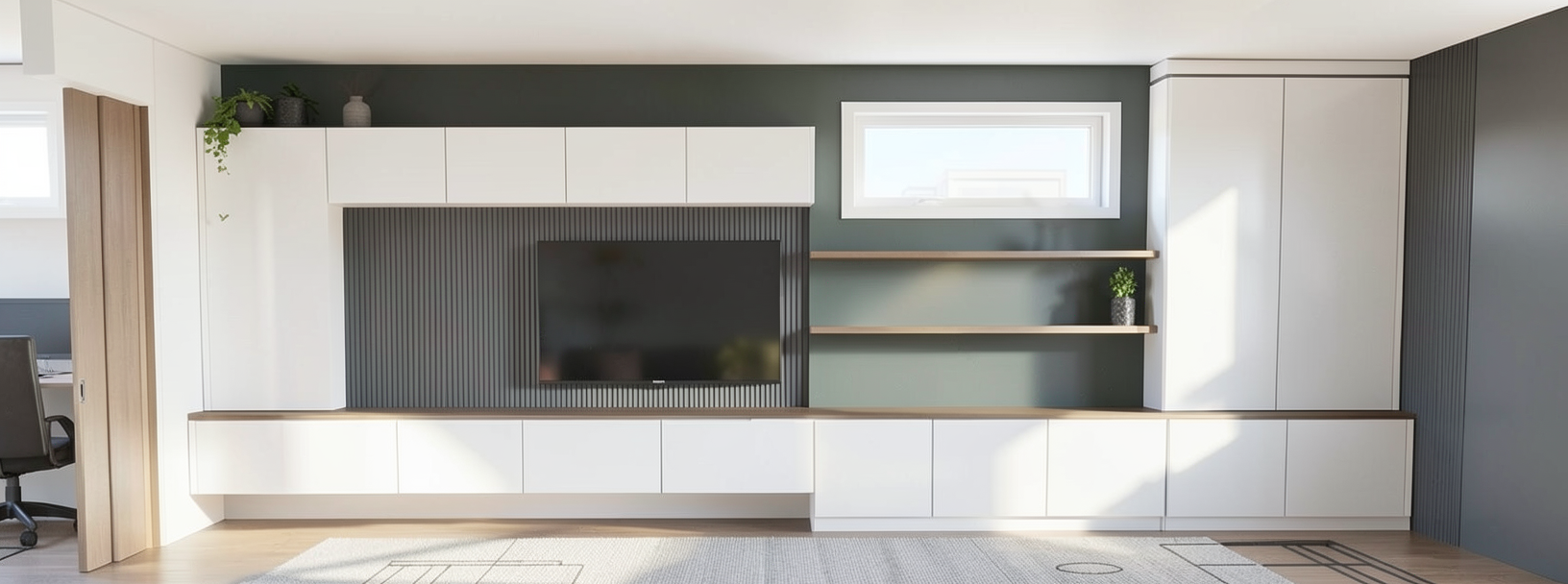 photorealistic architectural section render strictly orthographic section view flat 2d elevation style no perspective distortion whatsoever no vanishing points no 3d depth parallel lines remain perfectly parallel preserve exact proportions lines angles window door placements and overall composition with zero changes to geometry or scale strictly orthographic view no perspective distortion only tweak the wall colour to rgb 193 197 191 and the ceiling colour to rgb 215 218 216 to add subtle tonal variation richer natural depth and gentle gradients while using cool modern neutrals overall soft southwest facing afternoon light low angle from the southwest long soft shadows stretching northeast cool toned diffused daylight add only realistic materials in cool modern neutrals soft greys and crisp whites clean natural daylight and subtle shadows maintain colors v2 strength 75 seed 10