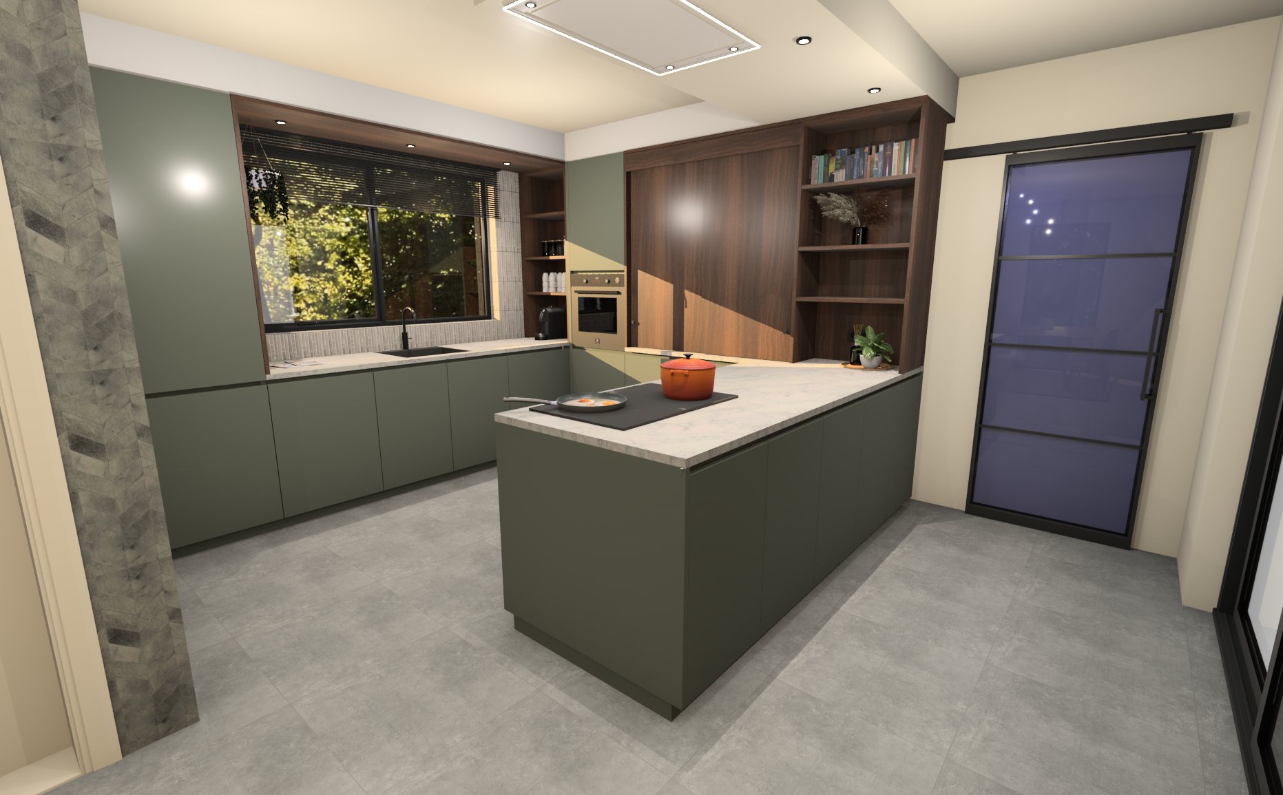 make the lighting sharper and more realistic don t add any new light sources don t change the colour of the cabinets or the worktop