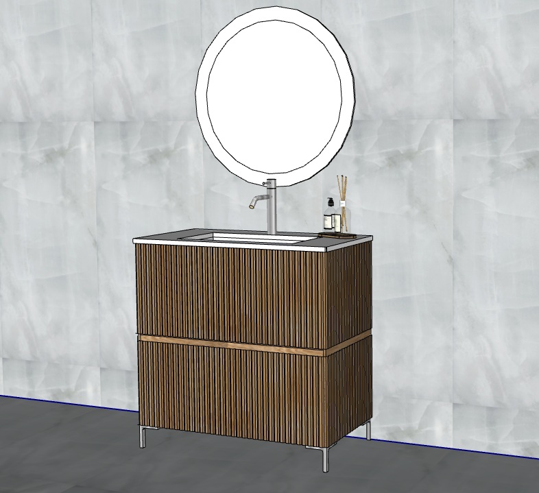 the colour of the wood is dark oak and the round mirror has frame made of disco ball material