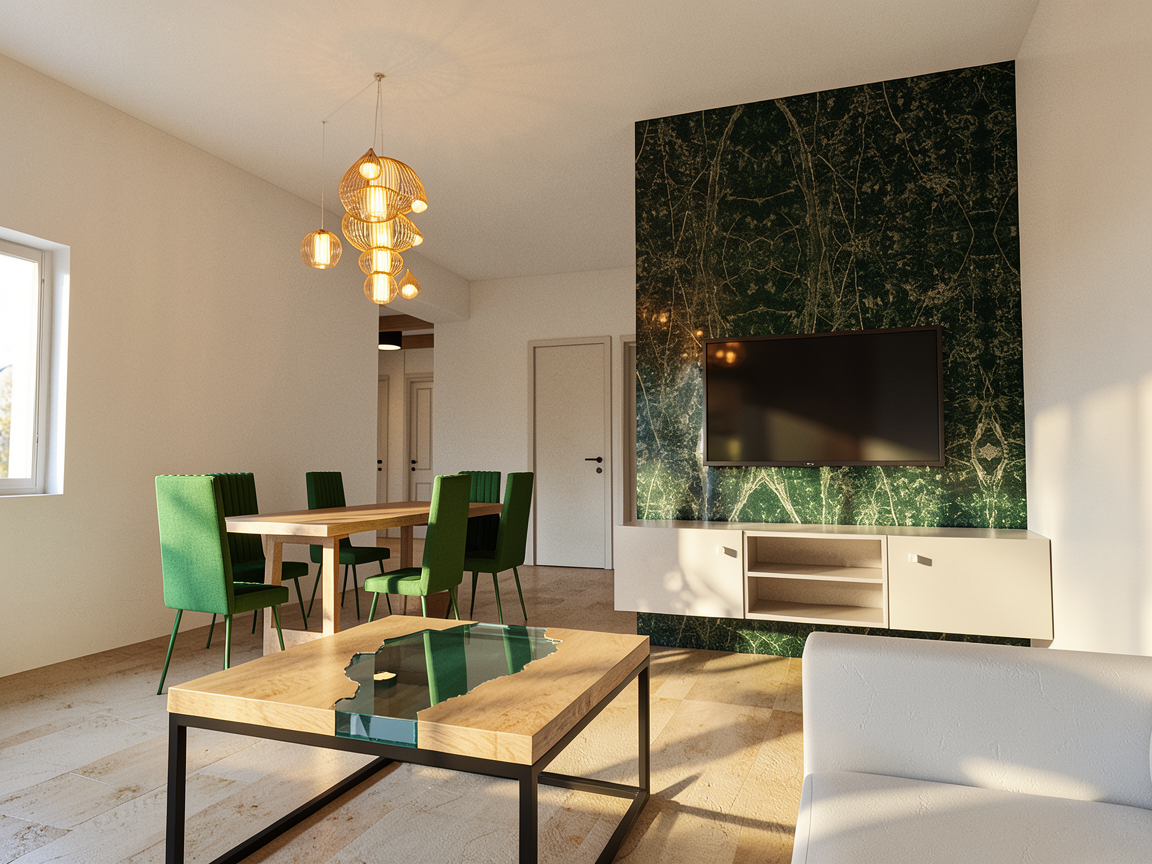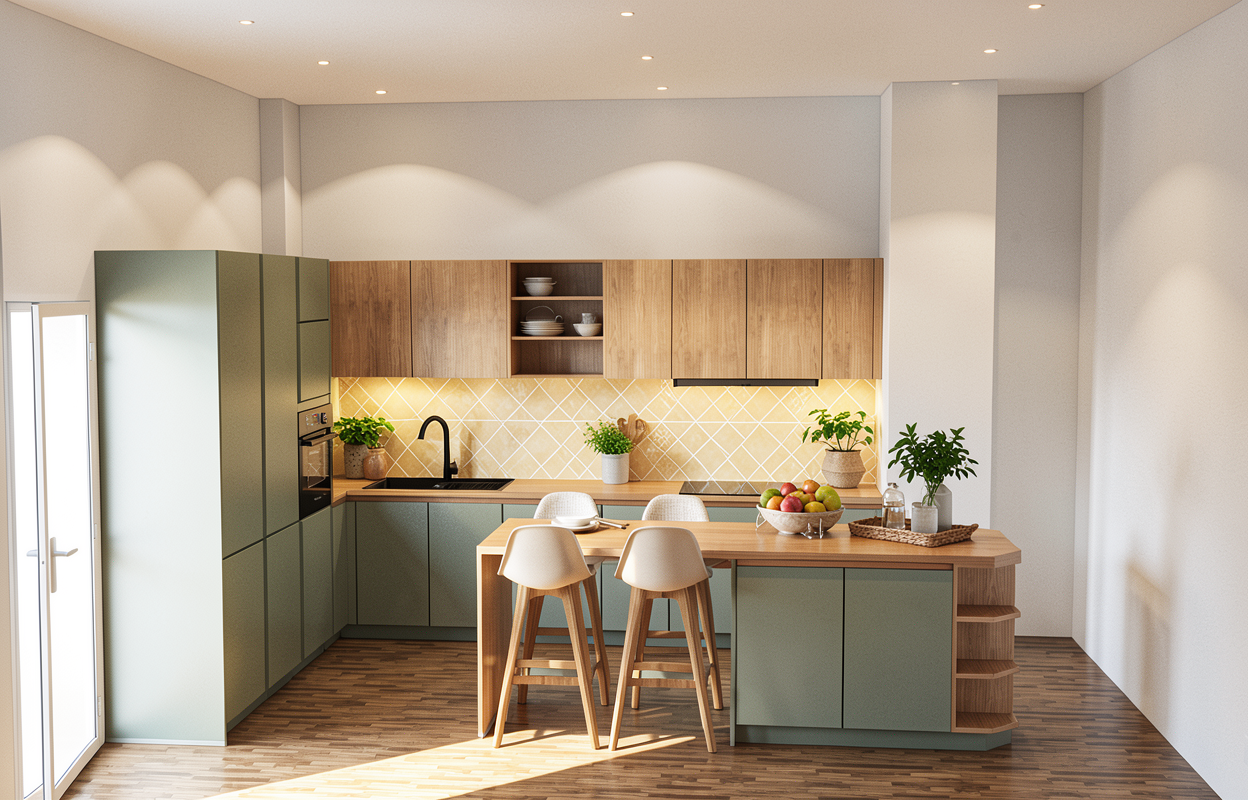 donne moi une autre proposition avec un carrelage blanc de forme hexagonale