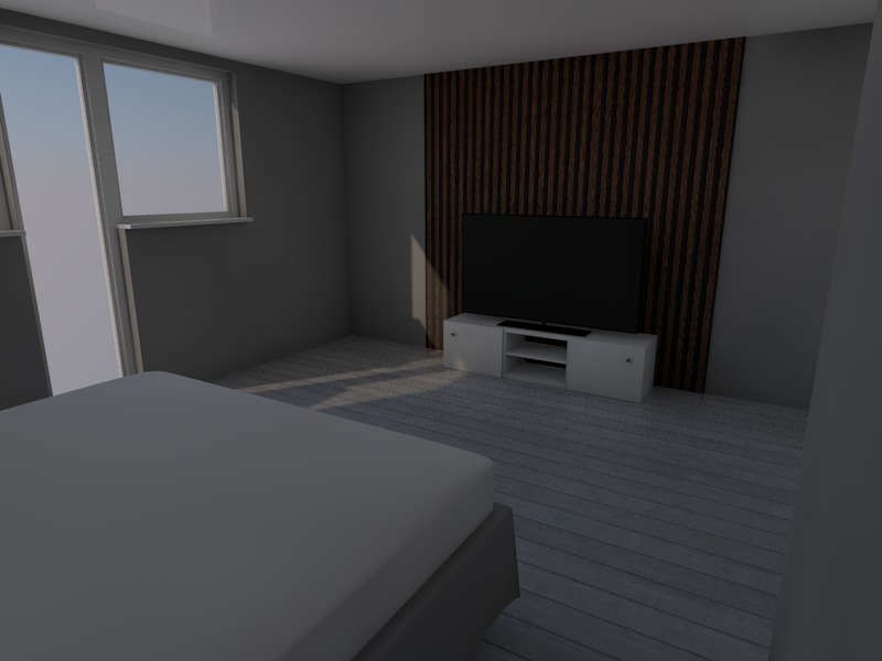 let there be a sunset let there be a gray curtain in front of the window half drawn let the room be a little lively