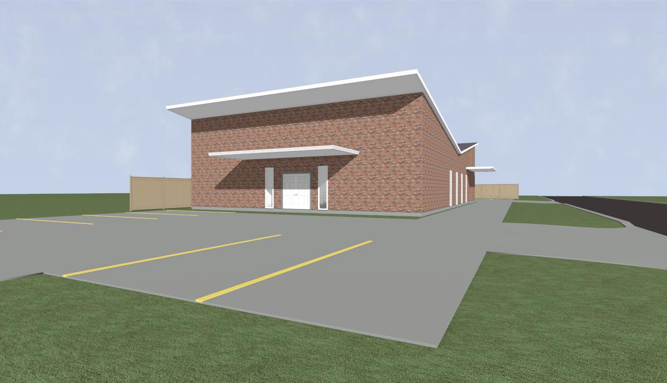 this is a one story suburban multi use building with a combination of brick wood and stucco show people cars a suburban background and some nice landscaping entrances to be covered