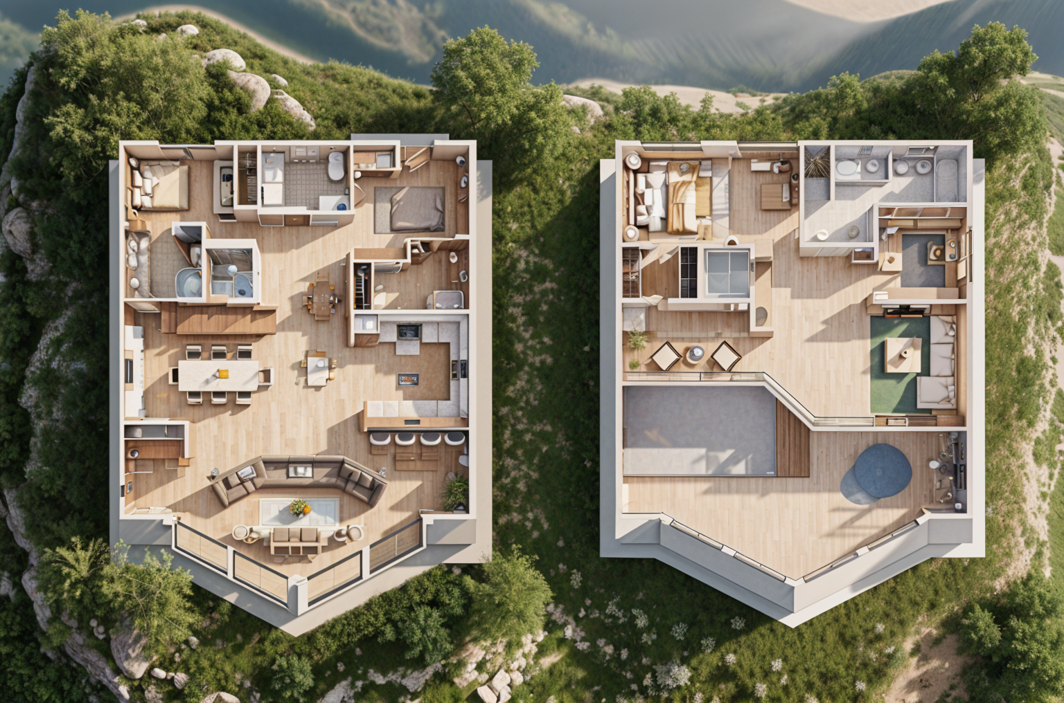 retain perspective render a photorealistic 3d perspective of this situated section perspective library in gunnison colorado reference the current material style just enhance them make a lush vegetation background of cottonwood trees that looks native to gunnison colorado do not change the view only enhance the current materials and make the landscape nicer vegetation detailed textures in the wood siding and glass reflections and a vibrant clear sky with light atmospheric depth render in hyper realistic architectural visualization quality