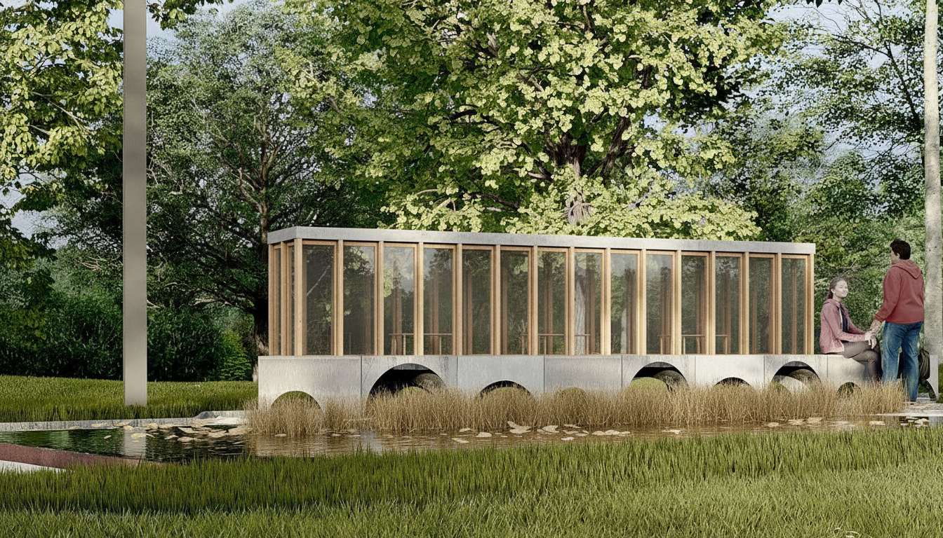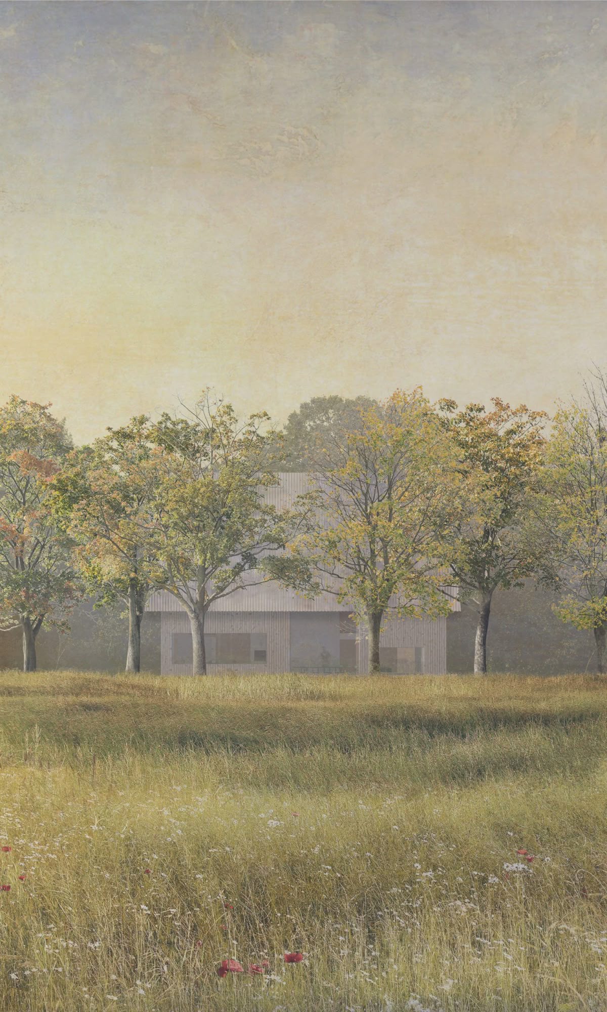 exterior shot do not change content only replicate the render style not the content of the mood board