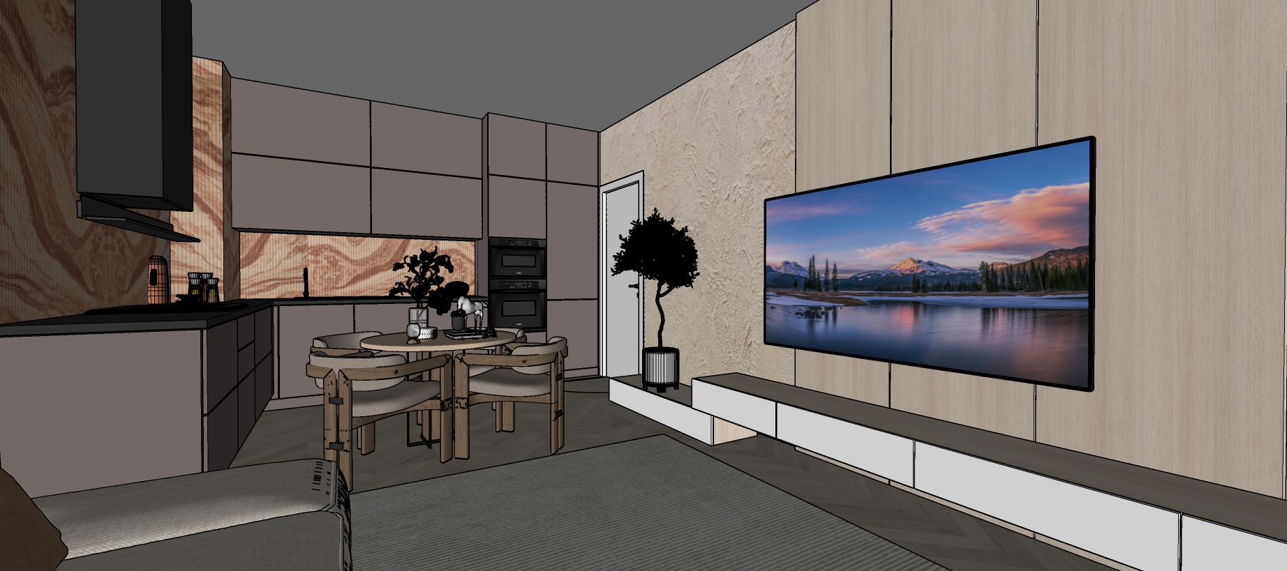 luxurious and modern living room with a cozy atmosphere a plush sectional sofa in a soft beige fabric is adorned with an assortment of throw pillows in warm earthy tones like terracotta and taupe the walls are painted a calming light gray providing a soothing backdrop elegant sheer curtains in a soft ivory allow diffused natural light to seep in casting gentle shadows a round textured coffee table in a light wood finish sits atop a subtle patterned area rug in muted shades of gray and burgundy the floors are a rich dark brown hardwood adding depth and warmth to the space a small lush green potted plant adds a touch of nature enhancing the tranquil ambiance