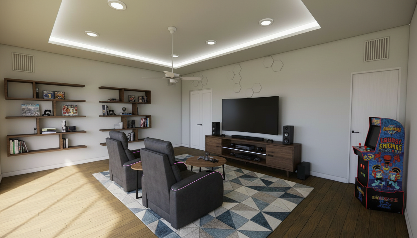 create a photo realistic image of an entryway with this wallcovering installed on the ceiling paint the walls white and make the floor a white oak herring bone wood floor implement a brass semi flush mount ceiling fixture