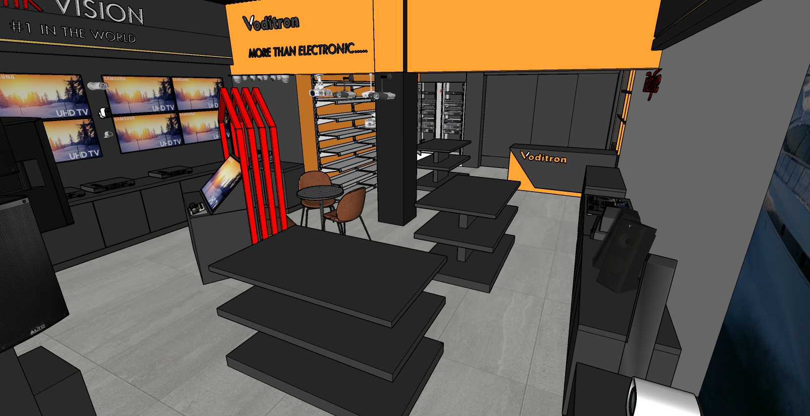 electronic shop black wall matarial and yellow