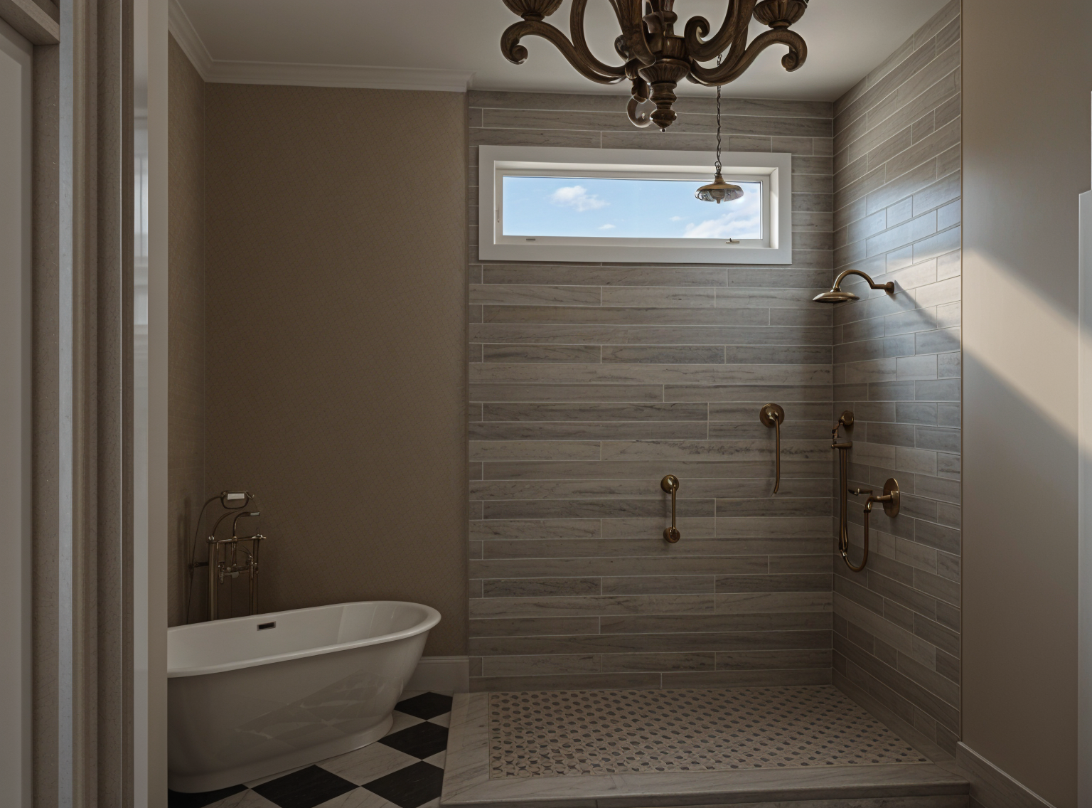 render a modern architectural office building with two stories featuring a sleek design use sheet metal gray for the fa ade with accents of natural stone texture in warm beige the windows are large with a reflective glass finish framed by dark steel there are green v shapped cladding plants the roof is flat the ceiling is a smooth beige metal panel and the overall structure is minimalist surround the building with a lush green lawn and subtle landscaping include a morning sky with soft clouds to create a serene and inviting atmosphere add a big rock in front of the right facade