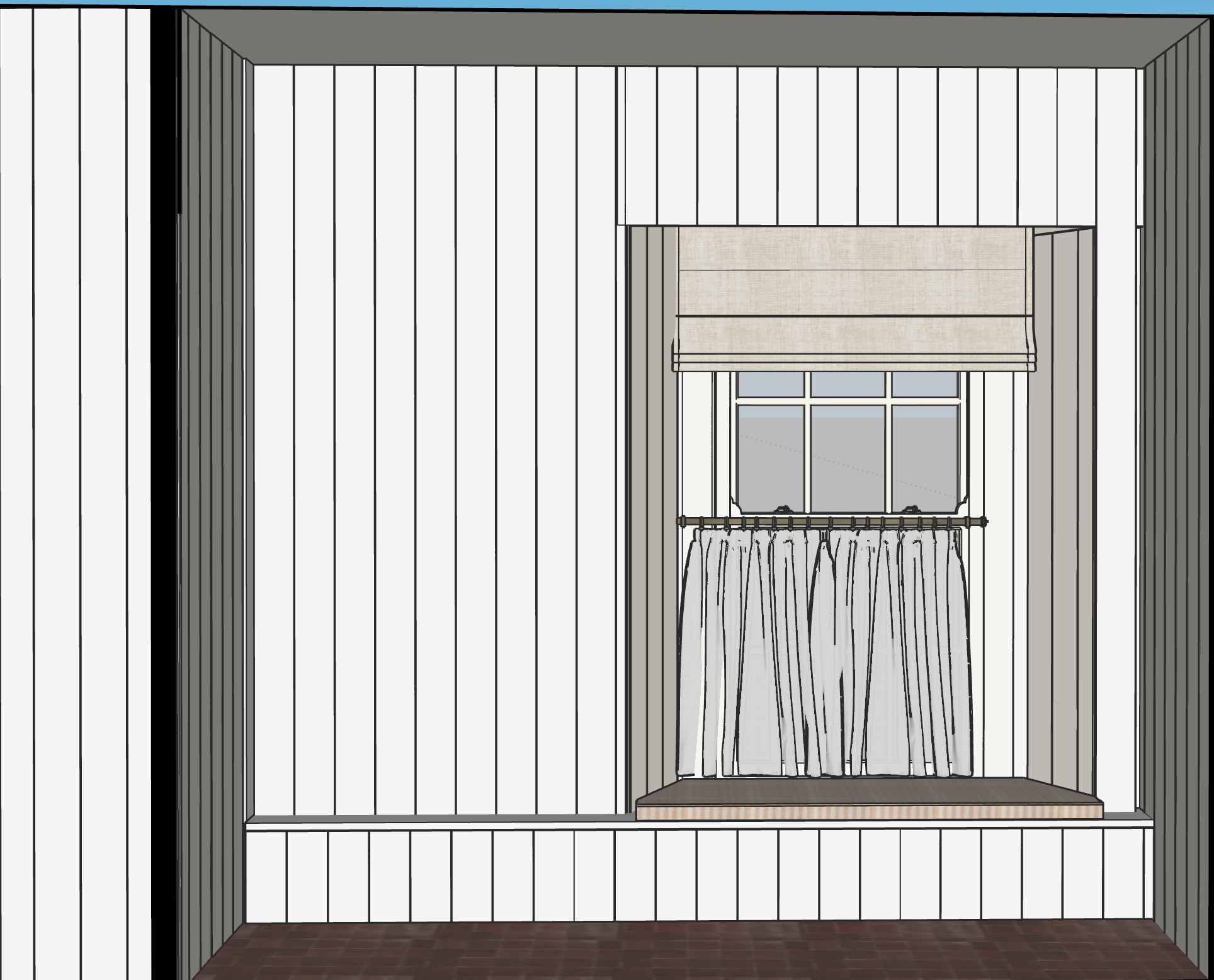 render this photorealistic lots of atmosphere look like it was taken on an slr camera satin paint texture on panelling outside image beyond window of trees