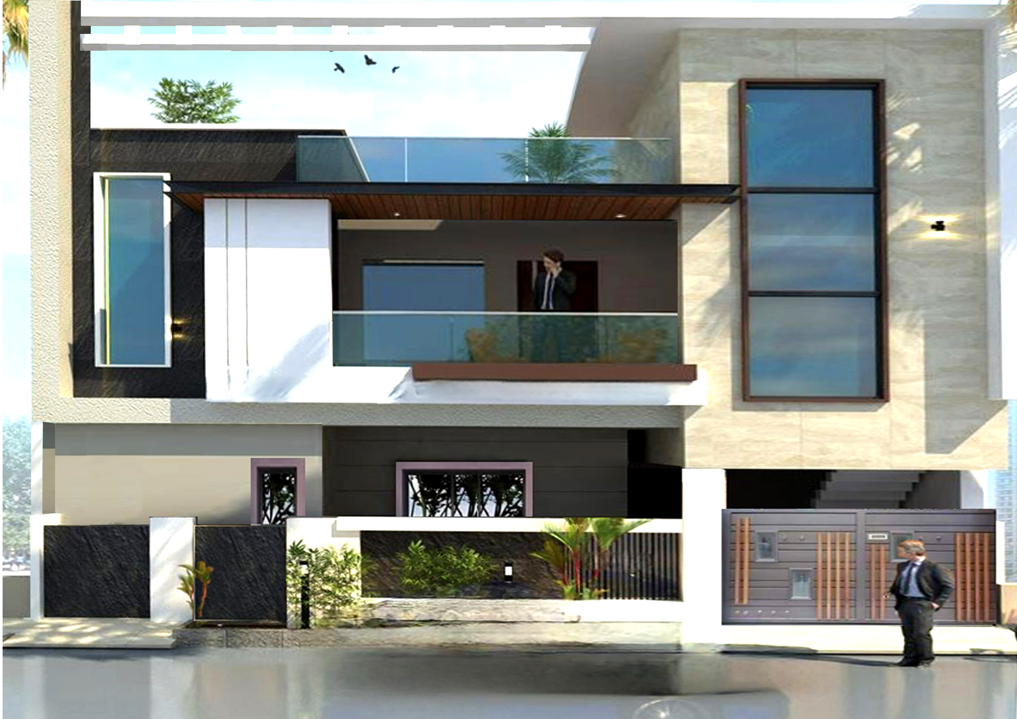 modernist exterior shot decorate it with bulb lighting effect at evening architecture