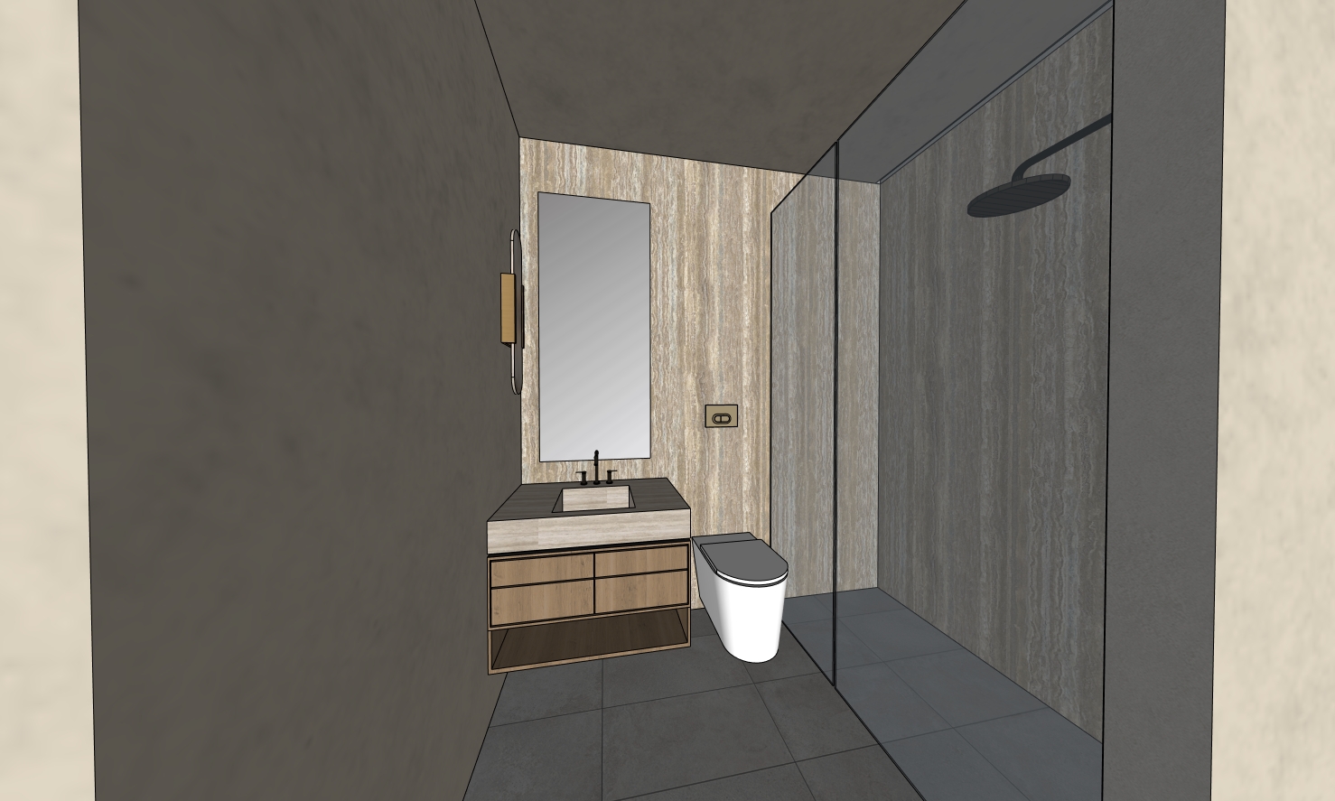 do not change the material make the exposure lighter have a light cove in the back wall of the shower make the plaster wall and ceiling beige tones
