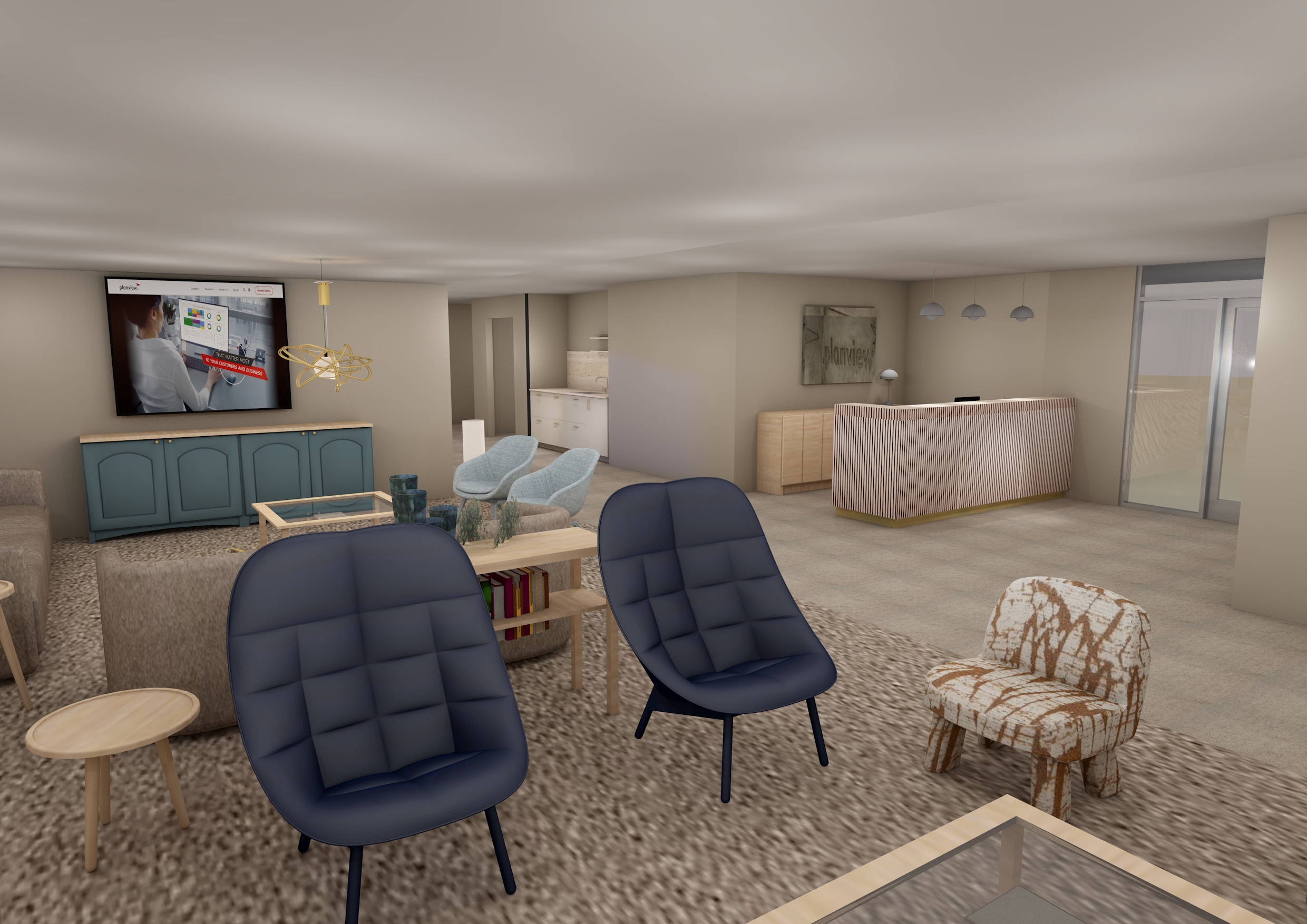 make it more realsitic make it brighter and light up the back walls with spotlughts keep the color of the carpet remove the books on the shelf behind the blue armcharis