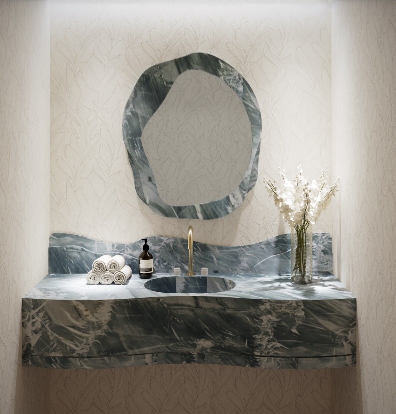 render this bathroom exactly as it is just changing the texture of the walls and doing a venetian plaster instead of this in the same color tone as the marble please do not change anything else and keep it at 8k resolution high quality