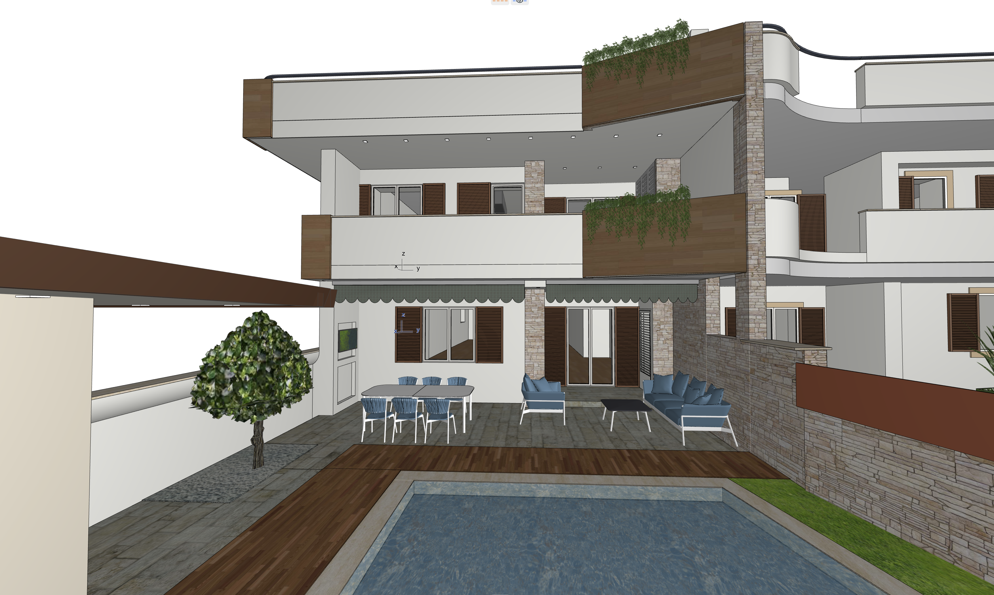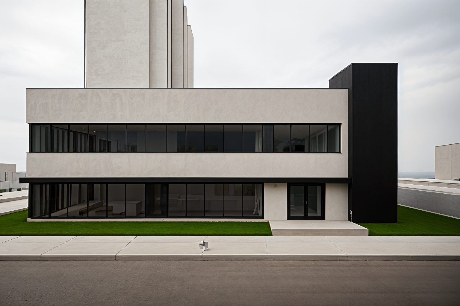 modern minimalist villa with a pool sunset sky with a few suggestive clouds the facade is well lit and the pool is illuminated from within